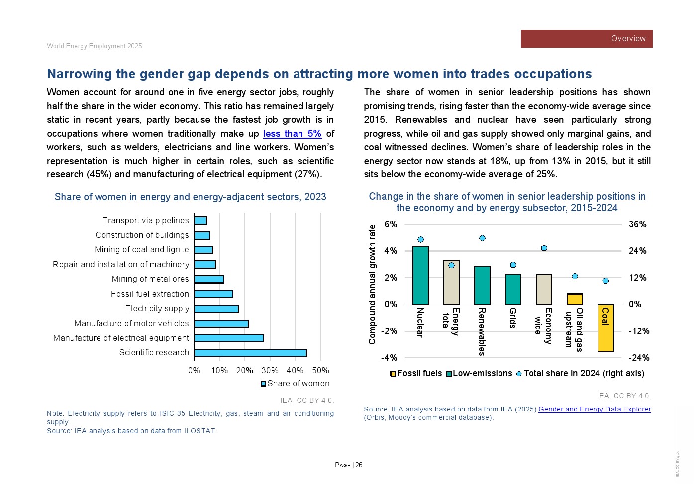 全球能源就业在2024年延续扩张态势,但结构性分化愈发清晰。国际能源署数据显示,2024年能源相关就业继续跑赢整体经济,就业岗位约占全球就业总量的2%,即“每50个岗位中就有1个来自能源行业”。其中,电力部门成为绝对核心,相关就业达到2260万人,正式超越燃料供应环节,成为能源体系中最大的就业板块 。