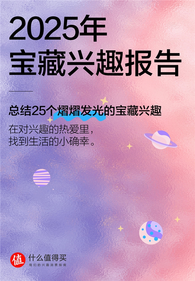 1月9日,“什么值得买”联合值得买消费产业研究院,正式发布《2025年宝藏兴趣报告》(以下简称“报告”),深度洞察过去一年中国兴趣市场的发展脉络。报告基于平台丰富的兴趣生态和消费数据,从数千个兴趣中甄选出25个具有代表性的兴趣,不仅梳理了过去一年“什么值得买”用户多元的兴趣图谱,更揭示了兴趣消费的前瞻场景,为未来的消费品牌创新提供指引。
