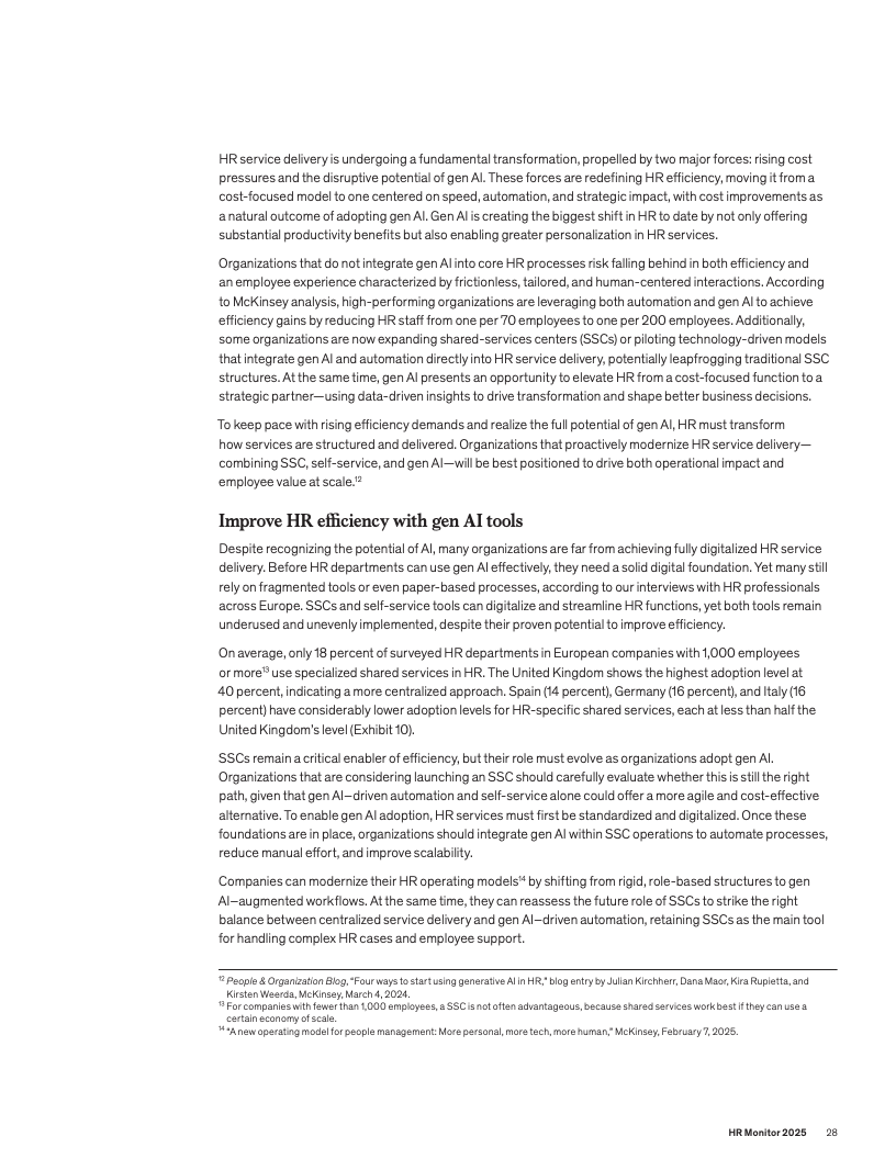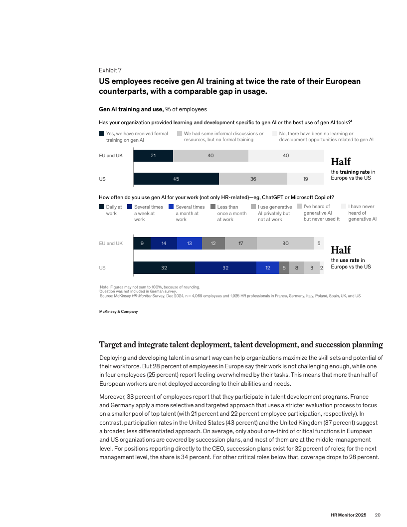 综合来看,未来12至24个月将成为欧洲HR转型的关键窗口期。趋势清晰指向三点:人力规划必须从岗位数量转向技能结构;员工体验将从“福利竞争”升级为“安全感与归属感竞争”;而生成式人工智能不再只是降本工具,而是重塑HR决策逻辑与组织韧性的核心基础设施。谁能率先完成这一体系性升级,谁就更可能在不确定环境中稳住人才与绩效的双重底盘。