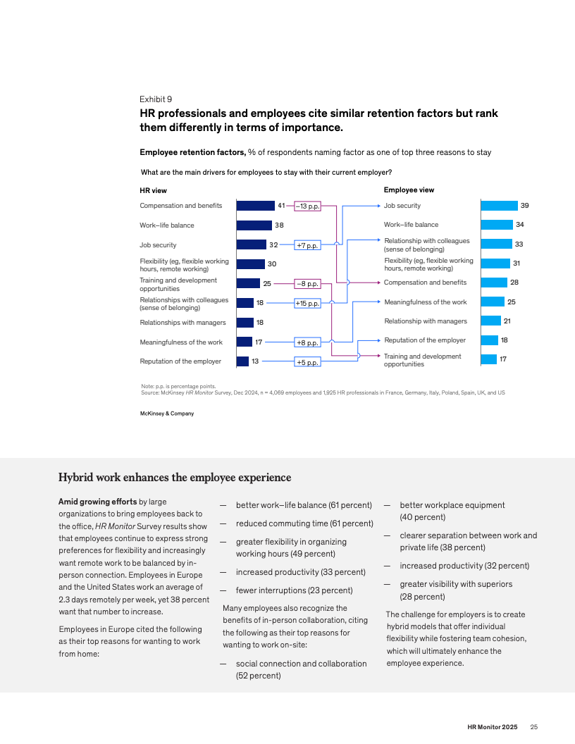 员工体验已成为潜在的结构性隐忧。约20%的员工对雇主表示不满意,但自愿流失率仅5.6%,二者之间的差距指向“静默离职”风险。员工留任的首要动因已从薪酬转向岗位安全感,占比39%,其次是工作与生活平衡和同事关系,而HR仍将资源优先配置于薪酬与工时优化,认知错位明显。