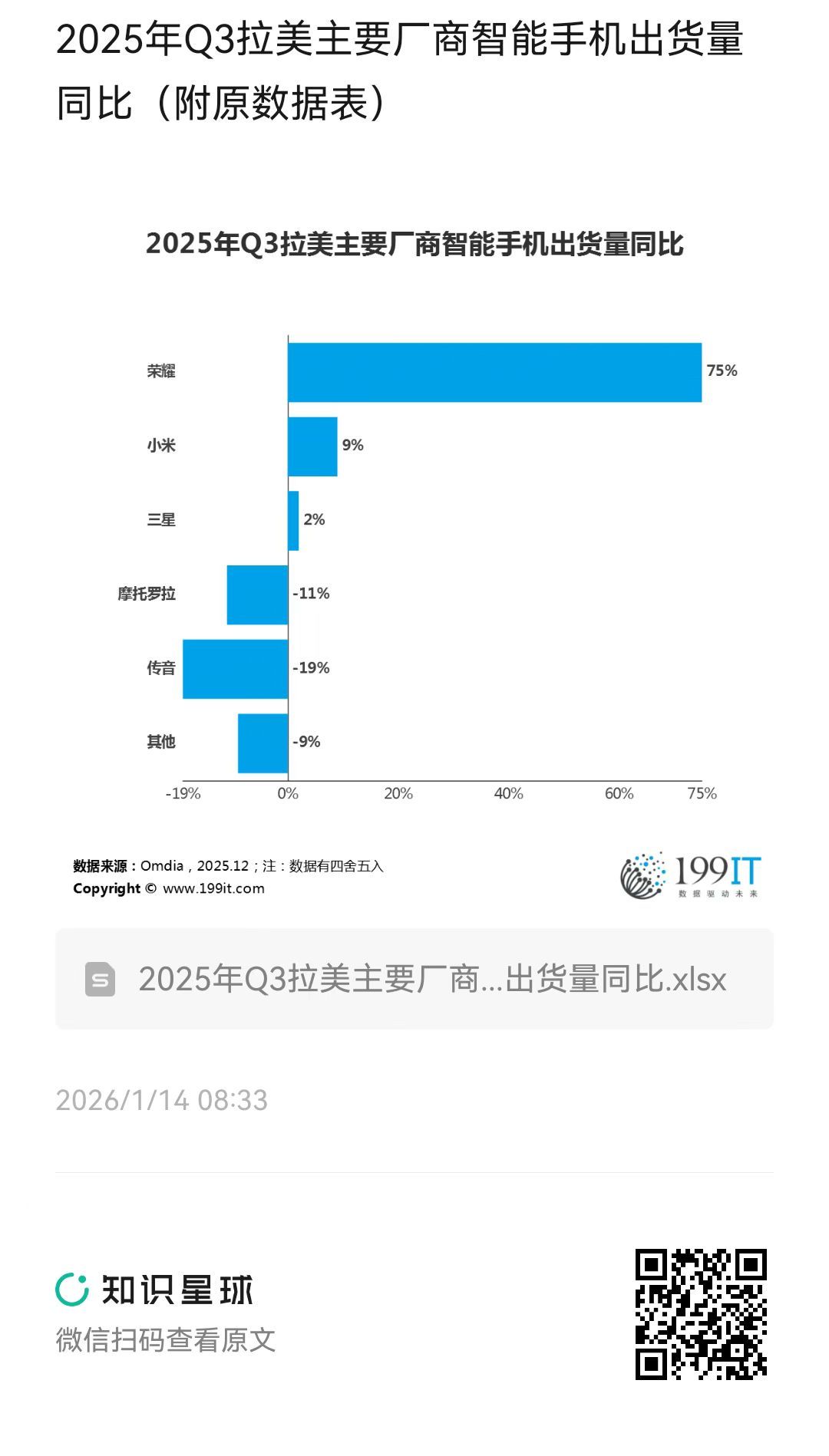 - 2025年Q3全球智能手机出货量同比(附原数据表)