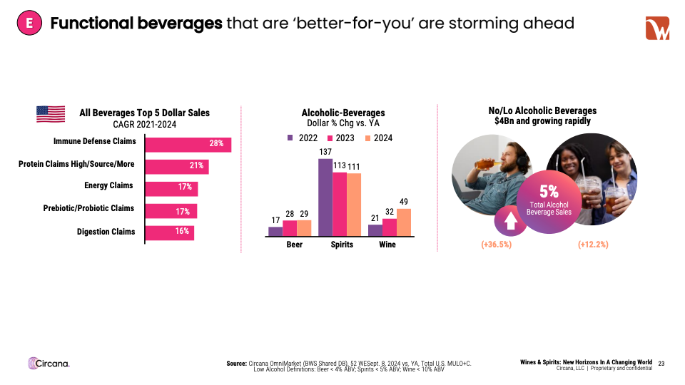 价值增长的另一支柱是高端化与小规格趋势。消费者倾向于“少喝但喝好”,推动高端烈酒、小瓶装及体验型产品的需求。与此同时,低度与无酒精产品快速崛起。美国市场低度酒精饮料规模已达40亿美元,低度烈酒在RTD鸡尾酒和硬苏打中的份额三年内提升近17个百分点,表明适度化和功能化正在重塑酒精饮料的边界。
