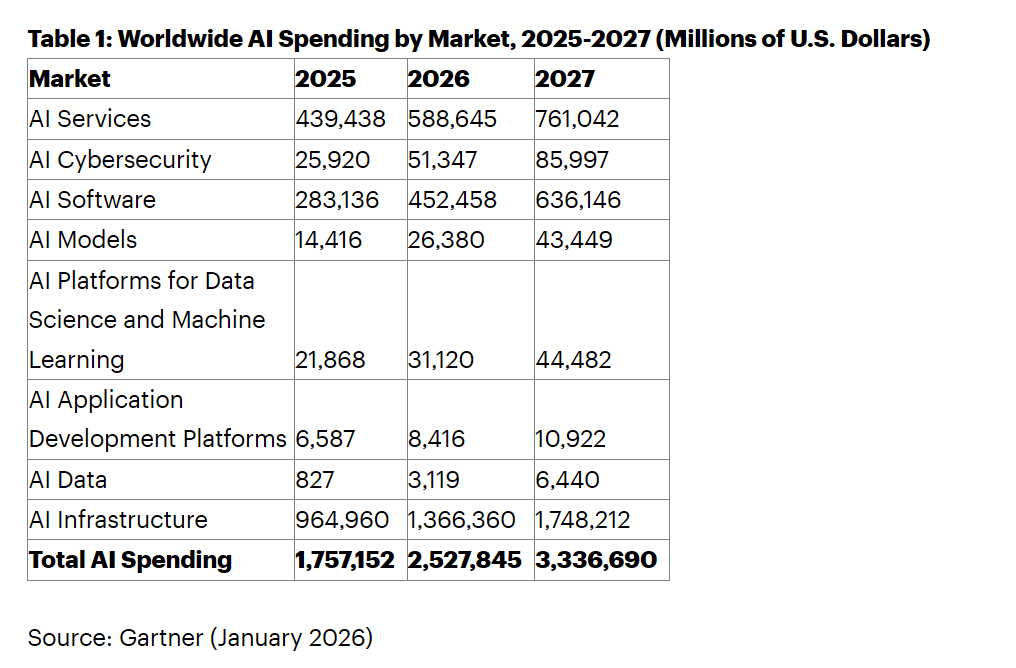 仅构建人工智能基础架构就将使 2026 年用于优化人工智能服务器的投入增加 49%,占人工智能总投入的 17%。由于技术供应商构建人工智能基础架构,人工智能基础设施在 2026 年还将带来 4010 亿美元的投入。