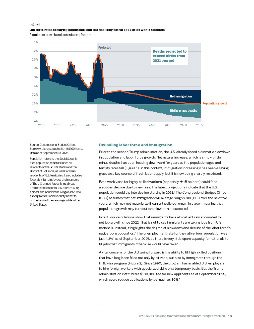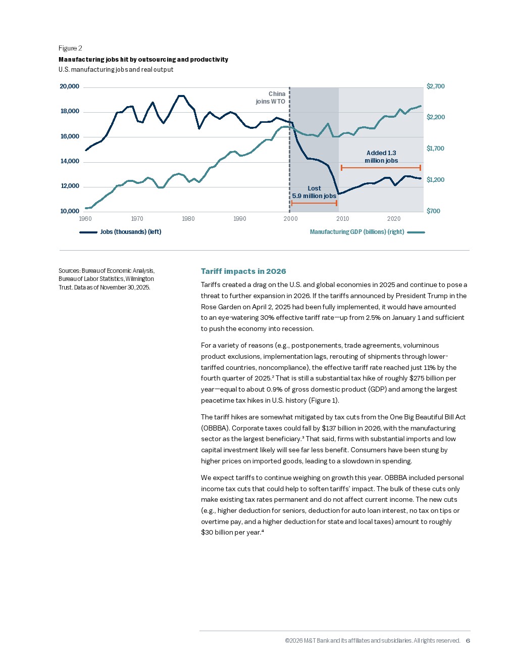 在当前全球经济环境下,历史经验的参考价值正在减弱,取而代之的是一场关于贸易、劳动力与债务的大规模经济实验。尽管2025年曾宣布了高达百分之三十的有效关税率,但受豁免和实施滞后影响,实际执行率为百分之十一。这仍然相当于每年两千七百五十亿美元的加税额,约占美国国内生产总值的百分之零点九,是二战以来最大规模的税收冲击之一。虽然企业所得税削减了一千三百七十亿美元作为对冲,但高额关税依然对消费支出构成了实质性拖累。