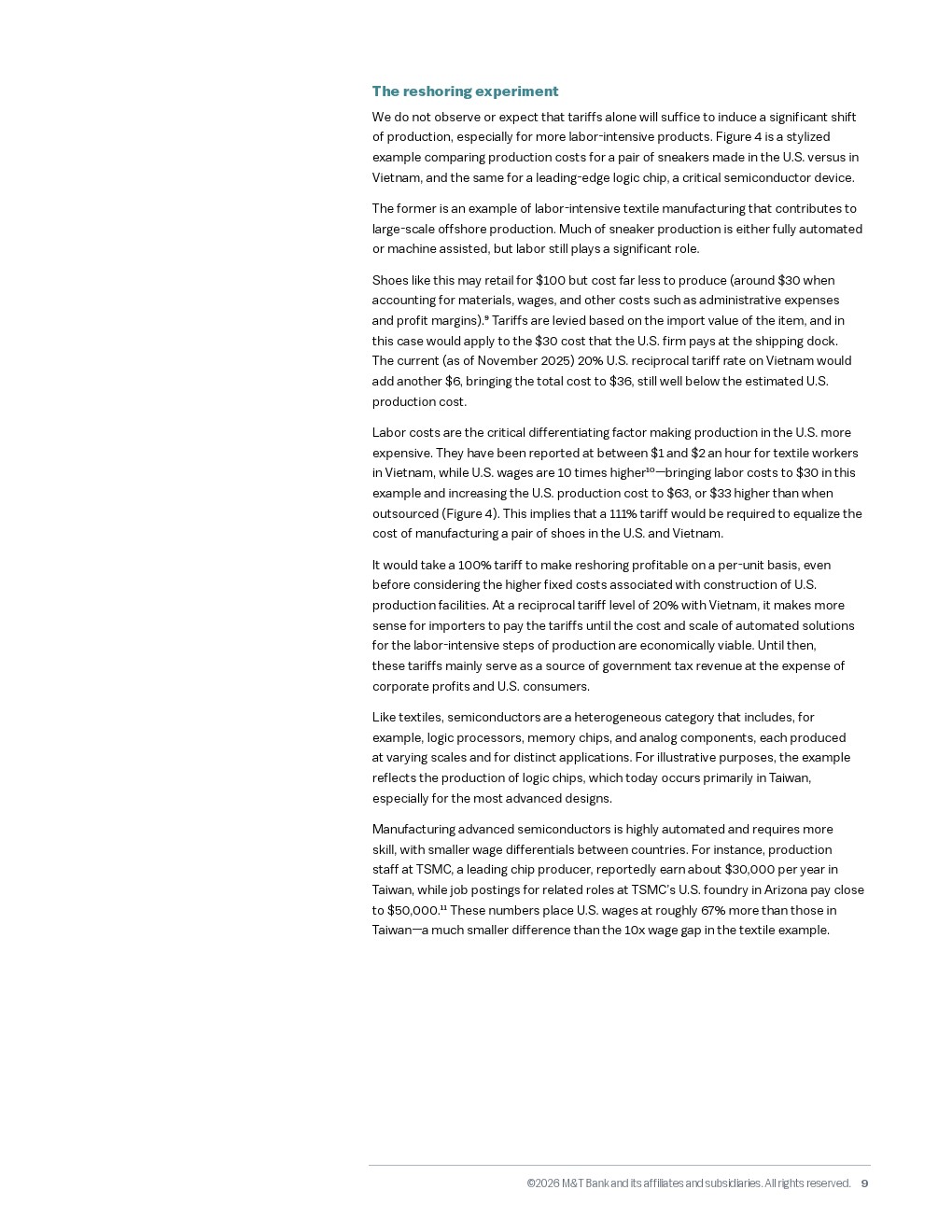 制造业回流的理想面临着严峻的成本红利挑战。数据显示,美国制造业员工的年均总成本高达八万六千五百零六美元,在全球范围内仅次于瑞士和挪威。以运动鞋制造为例,要抵消越南与美国的工资差距,关税需高达百分之一百一十一才能实现成本对等。即便在自动化程度极高的逻辑芯片领域,美国的运营成本也比台湾高出百分之十八,计入资本支出后的总成本差距达百分之四十四。这意味着单纯依靠贸易壁垒难以触发大规模就业回流,产业升级必须依赖智能制造。