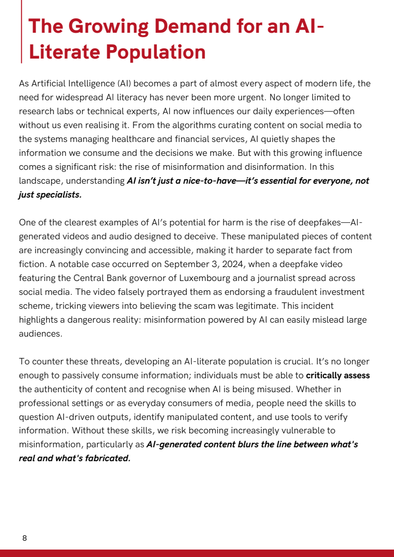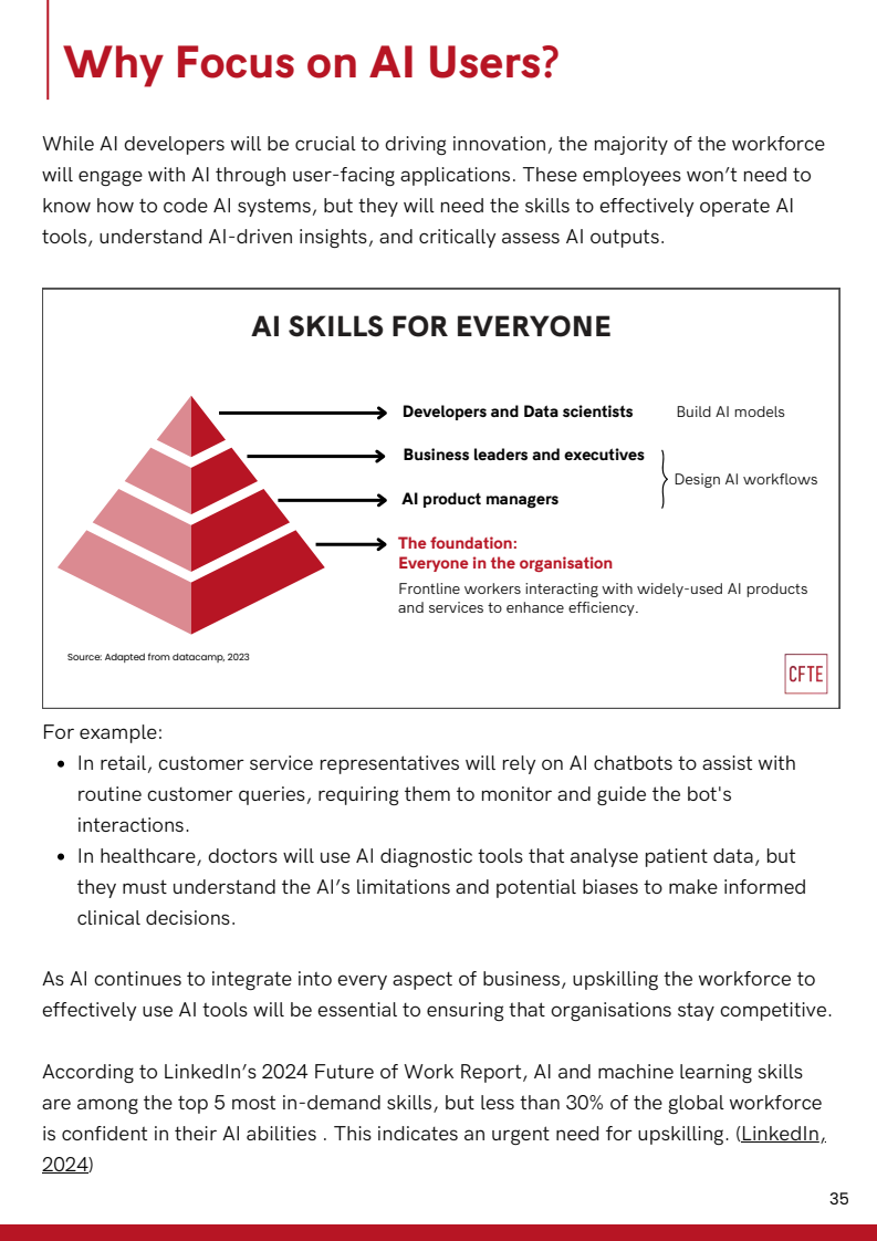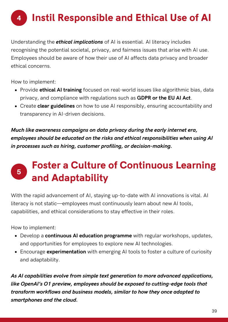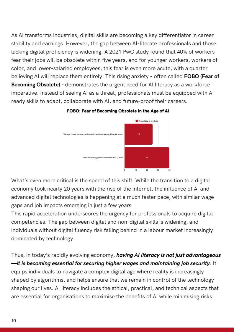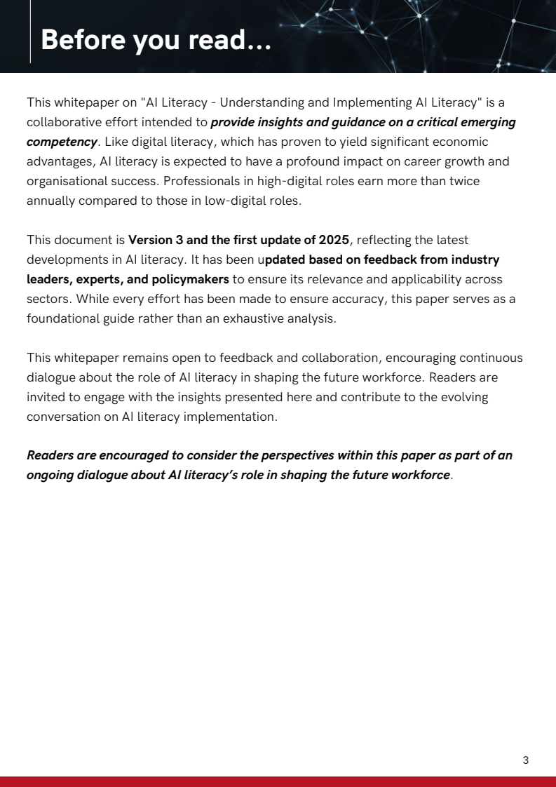 在制度层面,欧盟AI法案已将AI素养写入合规要求,自2025年起,使用AI系统的组织必须确保员工理解相关风险、应用场景与潜在影响。监管逻辑不再局限技术部门,而是覆盖管理层与一线员工,推动AI素养从“能力加分项”转变为“合规底线”。