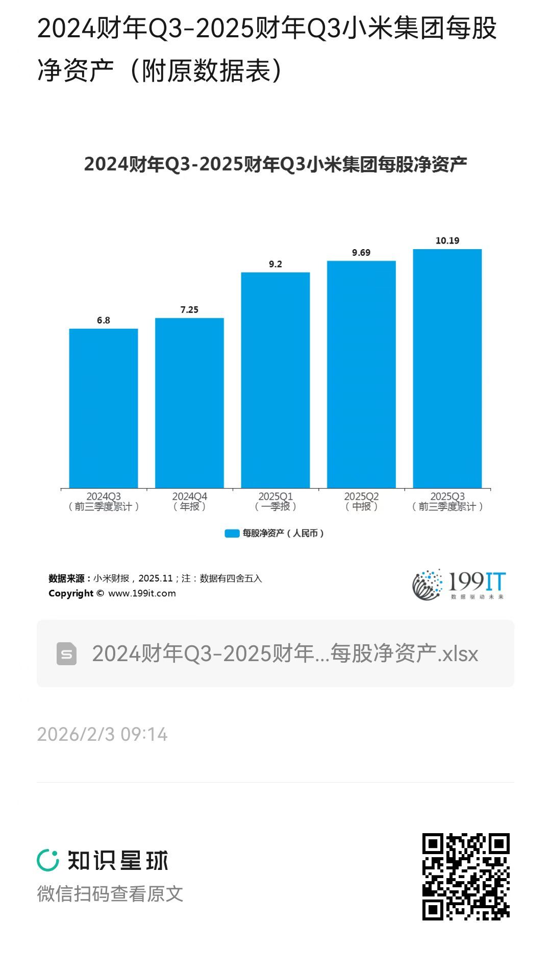 2024财年Q3-2025财年Q3小米集团每股净资产(附原数据表) ​​​