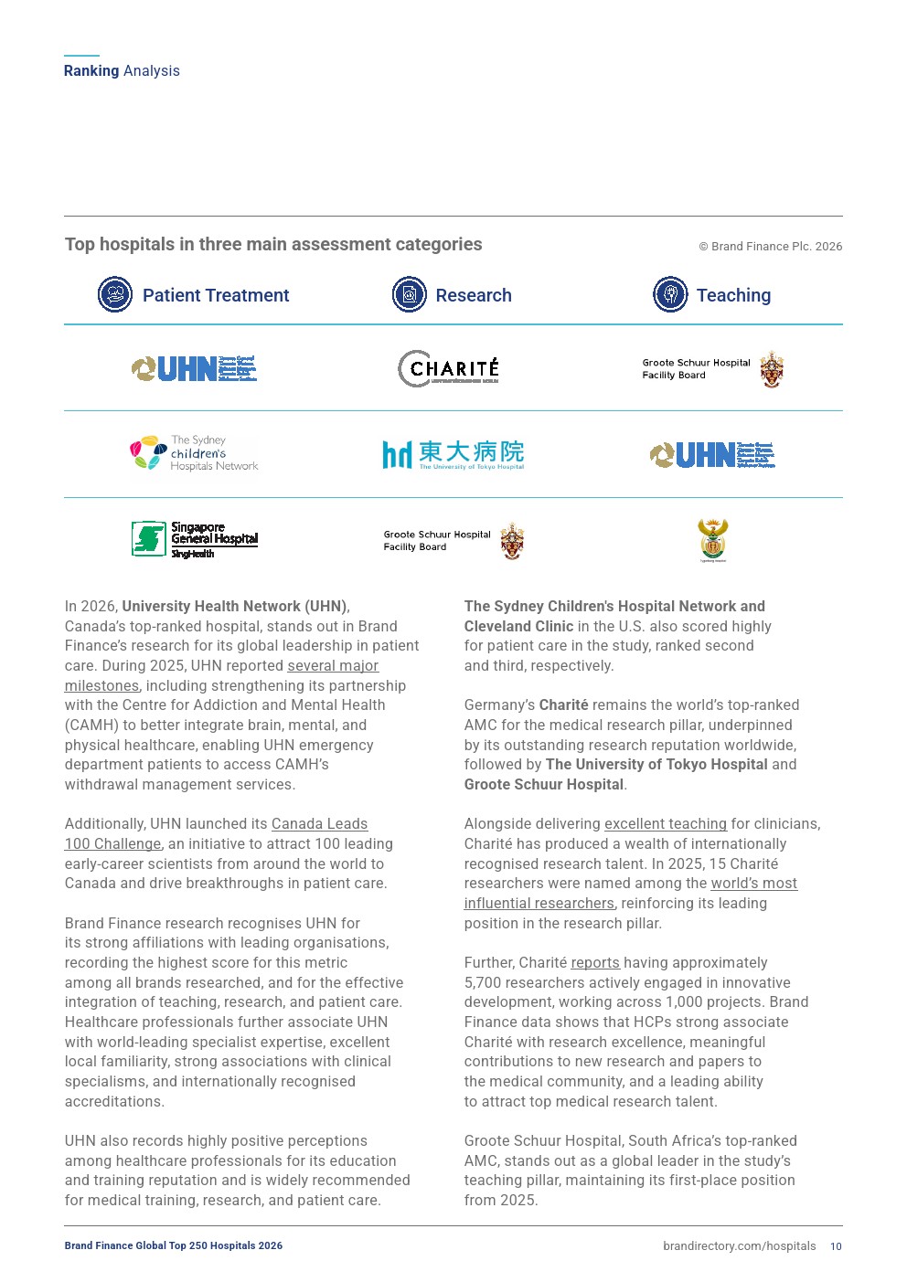 Brand Finance发布了新报告“2026年全球医院250强”。约翰斯·霍普金斯医学院连续第二年保持全球最强医院品牌的地位,其于2025年超越此前在2023-2024年蝉联榜首的梅奥诊所医疗系统。2026年,约翰斯·普金斯医院的品牌强度指数得分为83.3(满分100),这一成就得益于其卓越的品牌漏斗表现——该指标综合了全球超过500个品牌的认知度、熟悉度、考虑度及推荐度,使其成为全球调研范围内表现最强势的品牌。