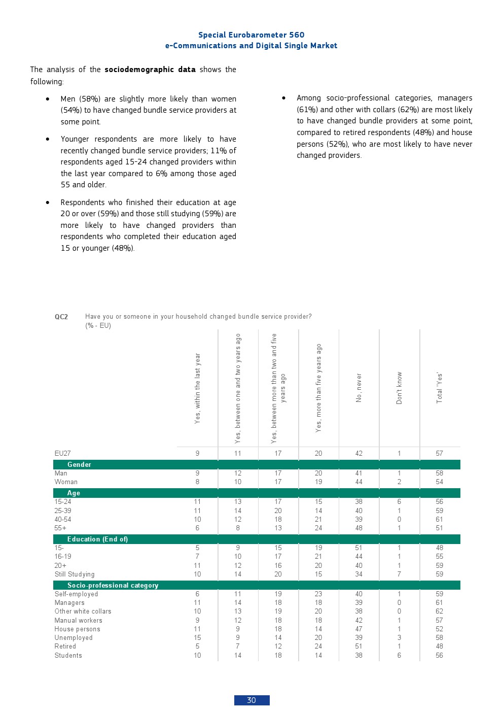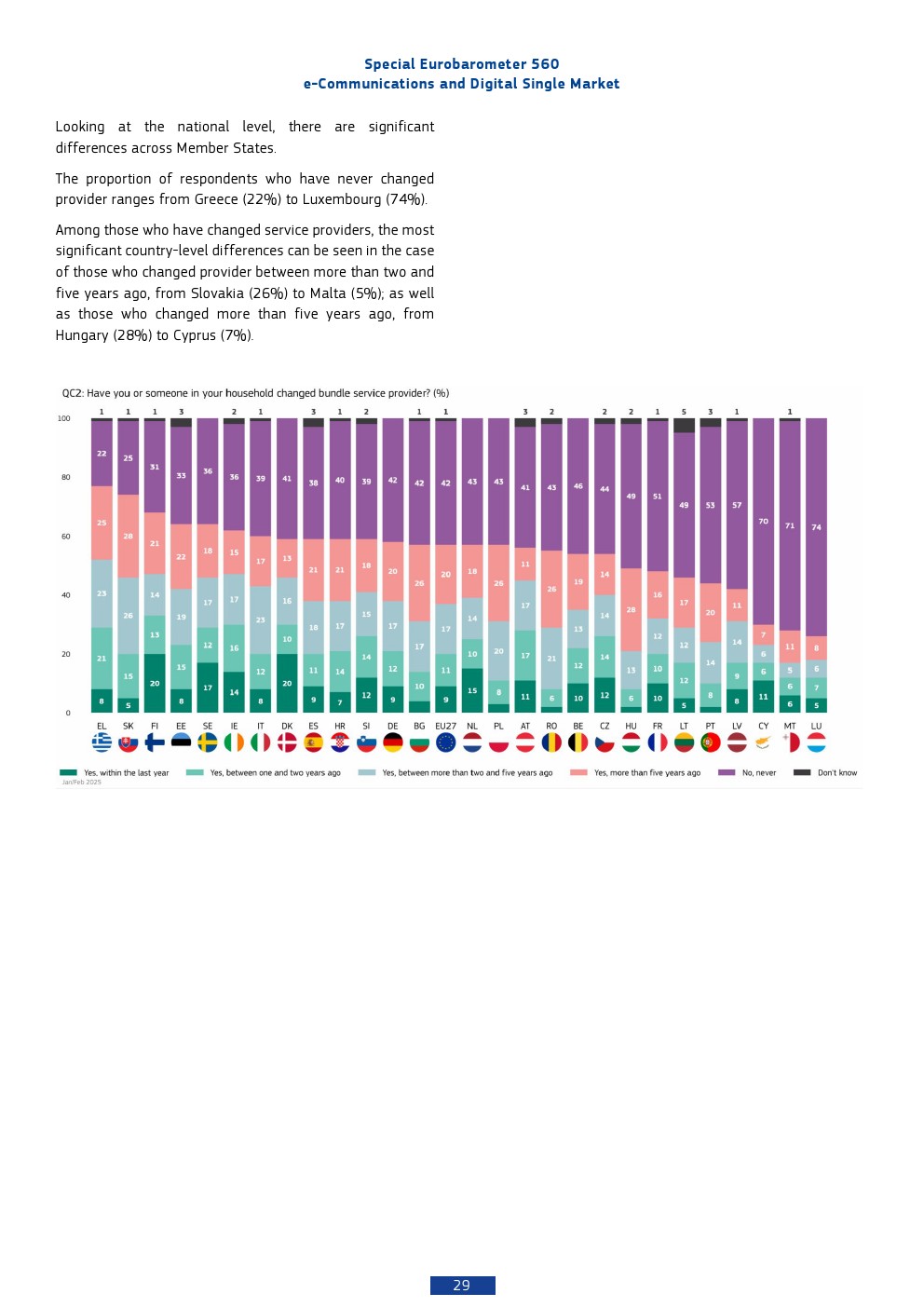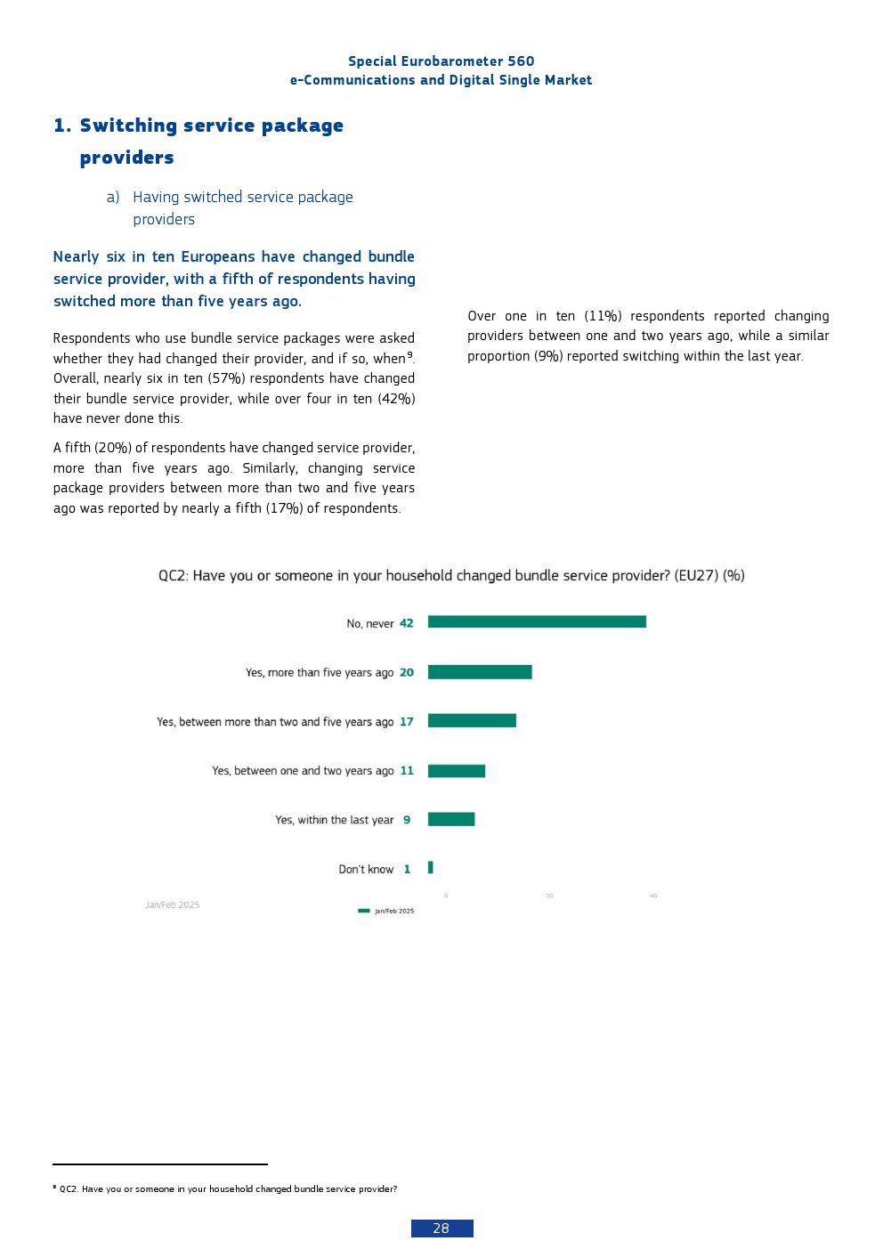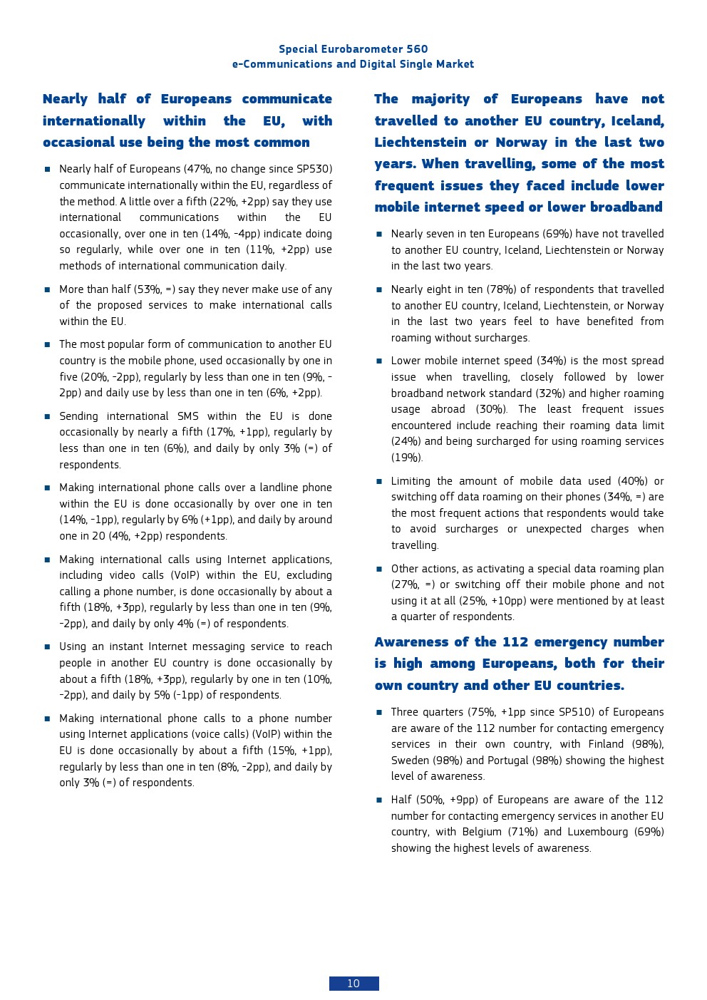 在跨境通信与出行场景中,47%的欧洲人进行过欧盟内国际通信,但以“偶尔使用”为主。移动电话仍是最主要工具,其次为即时通讯与互联网语音服务,显示传统通信与OTT服务并存的格局。69%的用户在过去两年未跨境旅行,但在出行人群中,78%受益于“无漫游费”政策,这一制度显著降低了跨境通信成本。然而,34%的用户反映网速下降,32%认为网络标准较低,说明统一市场下基础设施体验仍未完全均质化。