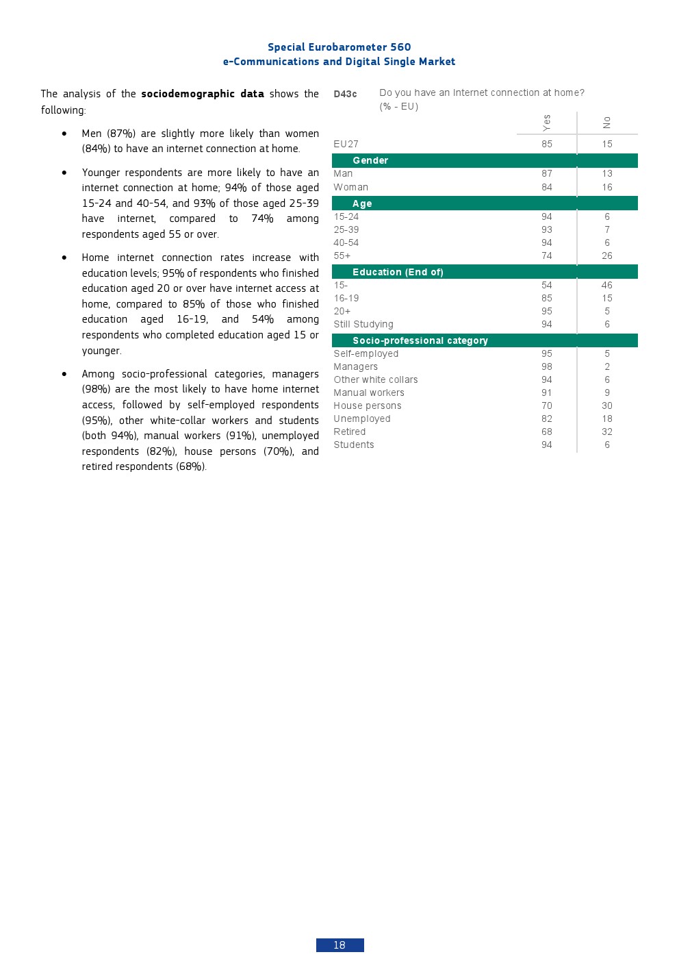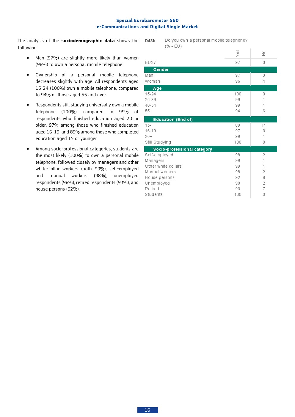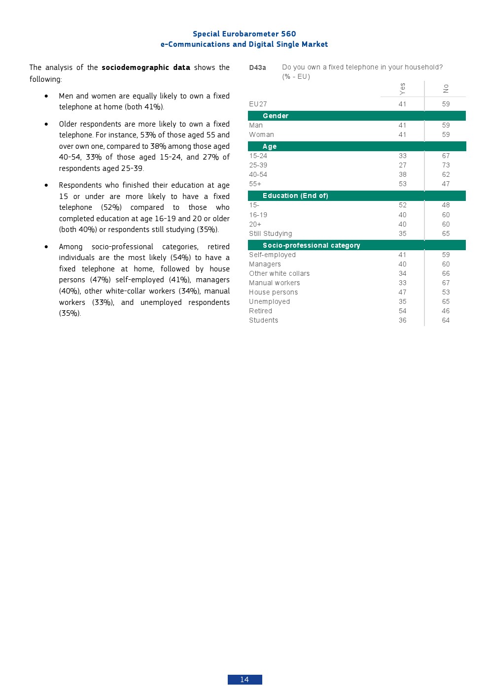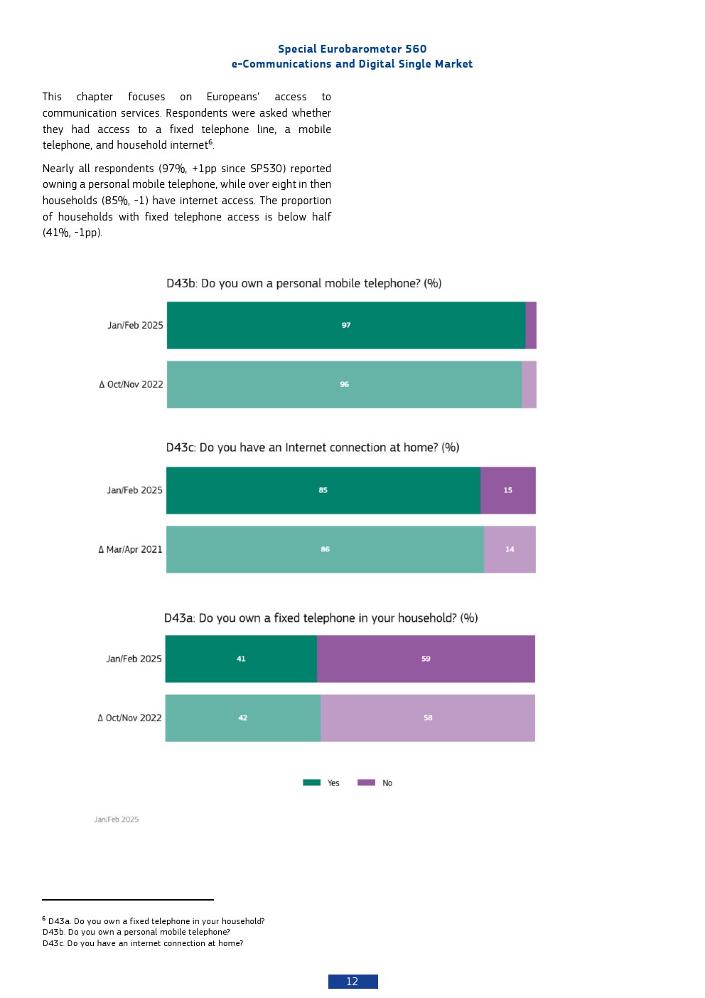 本报告基于2025年对欧盟27国26,354名受访者的调查,呈现出欧洲数字通信市场高度成熟但结构分化的特征。移动通信已实现近乎完全渗透,97%的个人拥有手机,而家庭互联网接入率为85%,显示基础数字接入已成为“准公共品”。相比之下,固定电话持有率仅为41%,并持续下降,反映出通信形态向移动化与互联网化的结构性替代趋势。