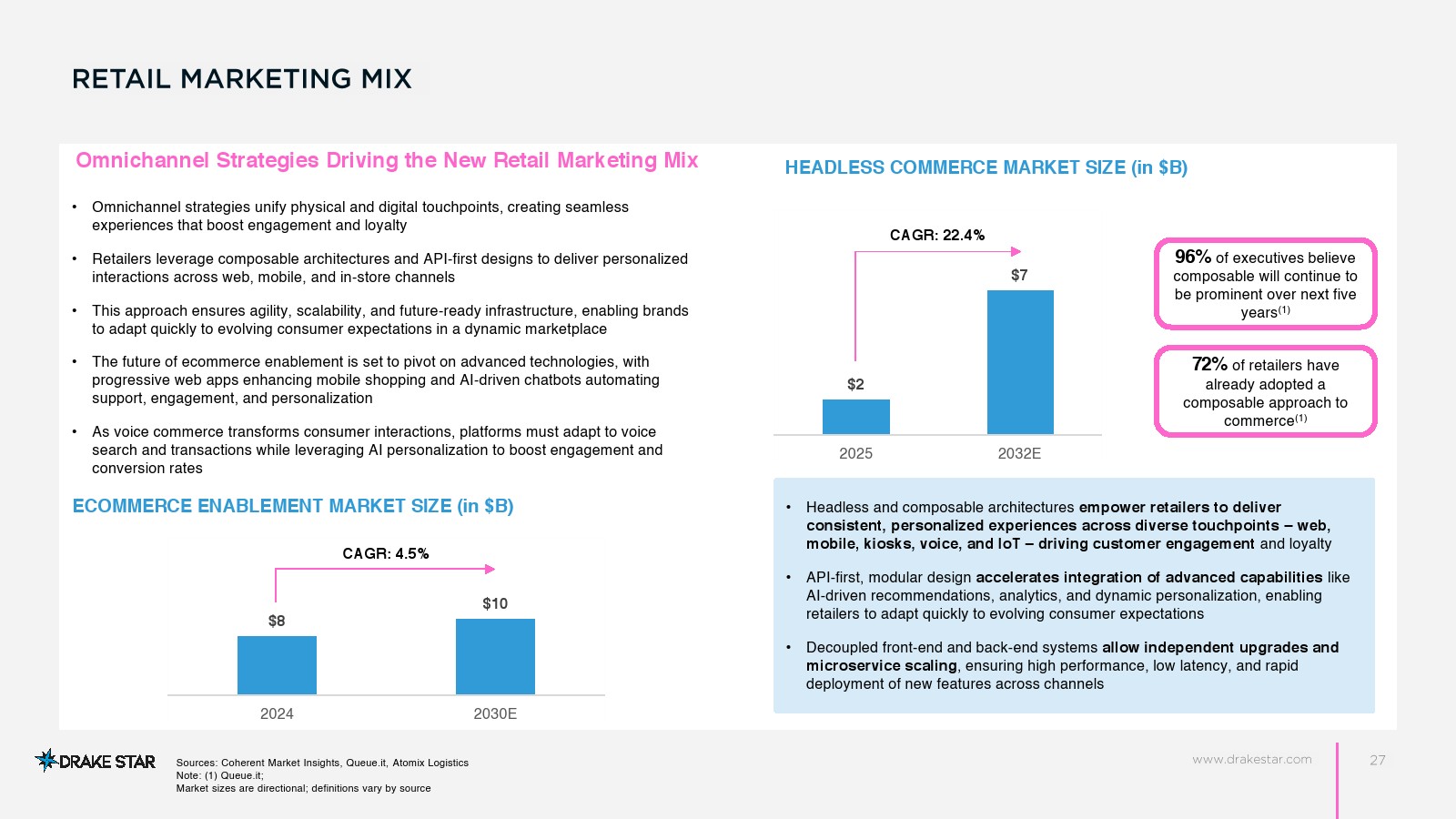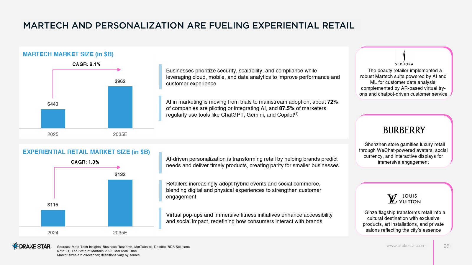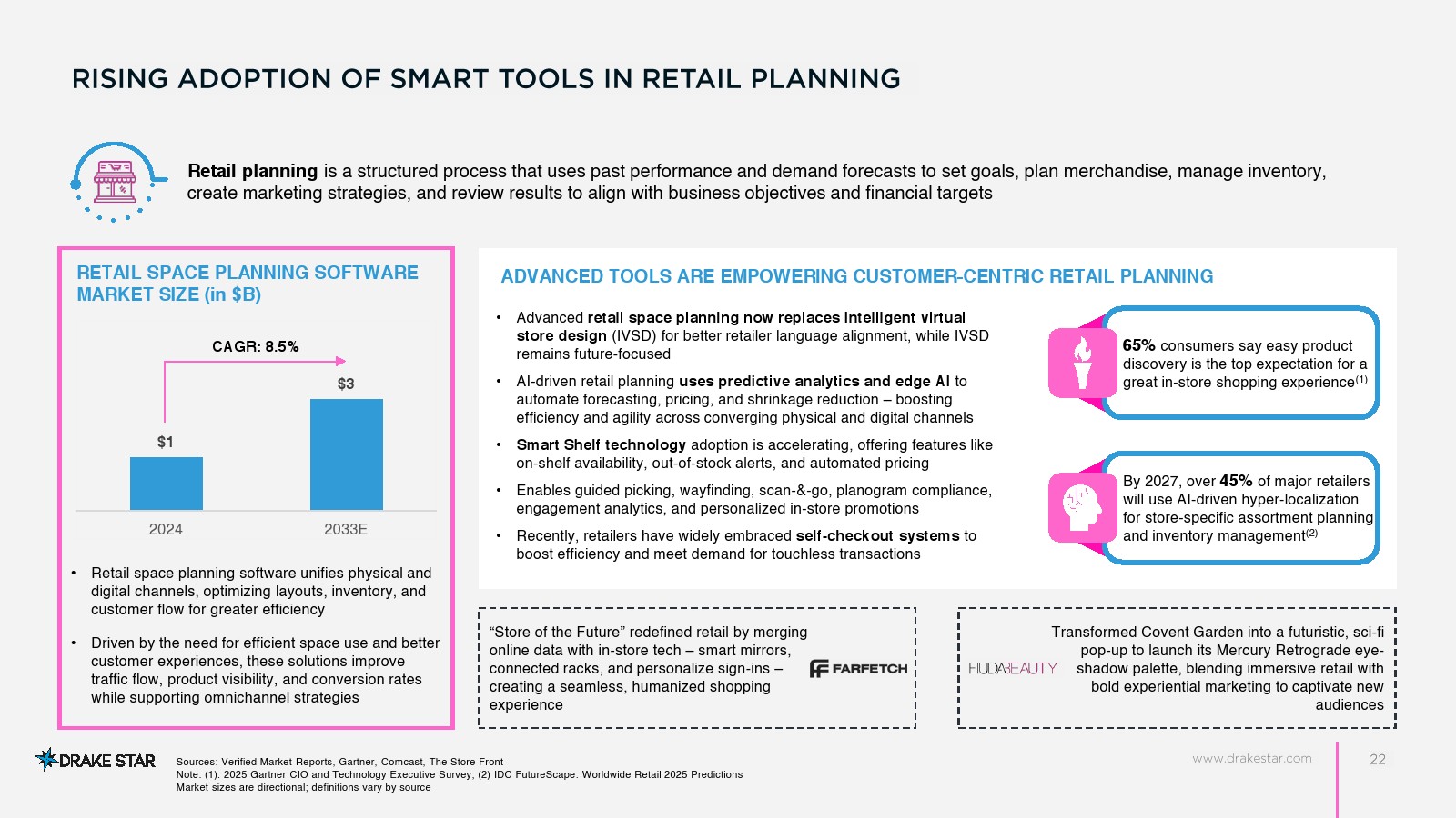 总体来看,零售技术正从“支持工具”转变为“价值中枢”。未来十年,行业将呈现三大趋势:一是AI全面嵌入业务流程,驱动自动化决策;二是平台化整合加速,数据与系统成为核心竞争壁垒;三是商业模式向“数据变现+体验驱动”转型。在31万亿美元零售市场的底层支撑下,零售技术有望成为下一轮全球数字经济中最具确定性的增长引擎之一。