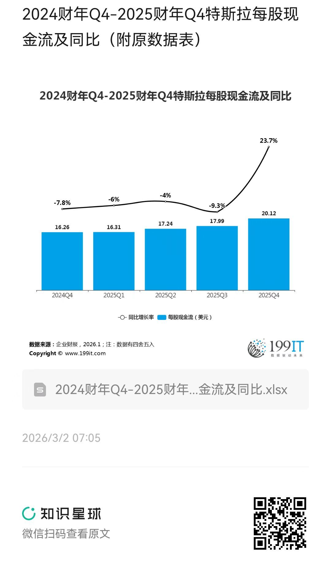 - 2022年Q3-2023年Q3特斯拉每股现金流及同比(附原数据表)
