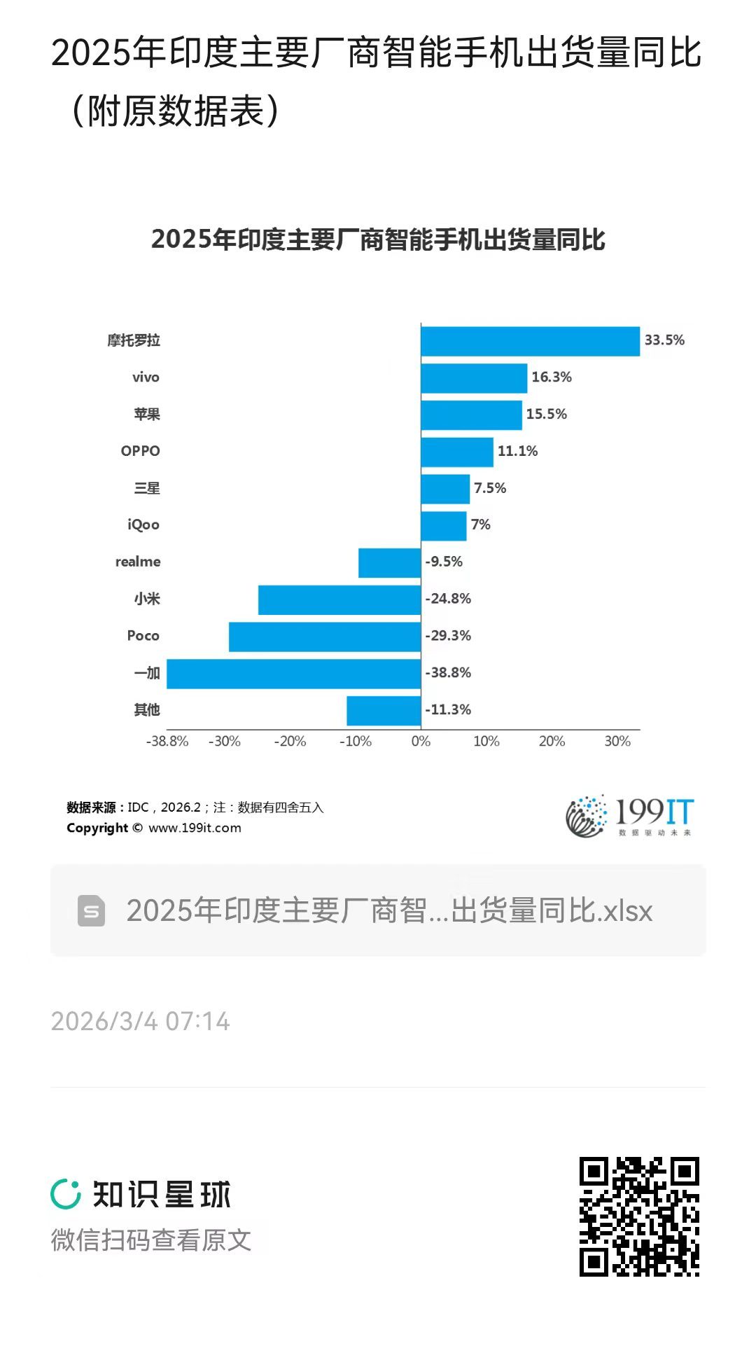 - 2025年印度主要厂商智能手机出货量(附原数据表)