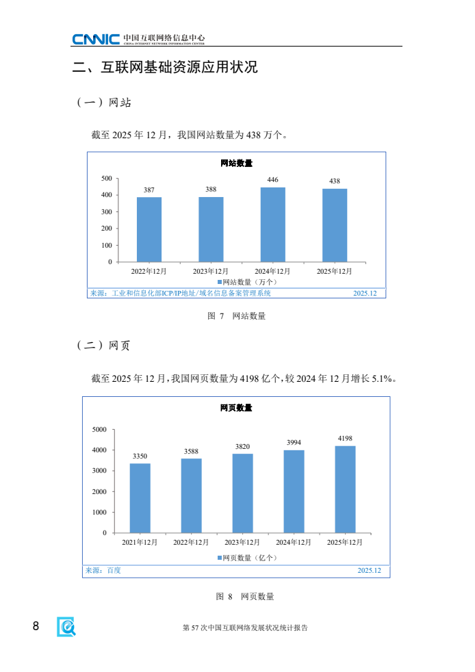 截至2025年12月,我国IPv6地址数量70215 块/32。截至2025年12月,我国域名总数为3230万个,其中,为2077万个.CN”域名数量