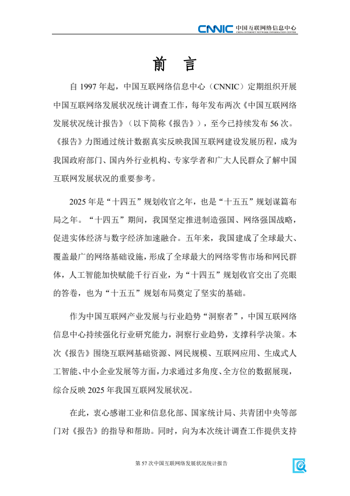 截至2025年12月,我国网民规模达11.25亿人,较2024年12月增长1717万人,互联网普及率达80.1%,较2024年12月提升1.5个百分点。