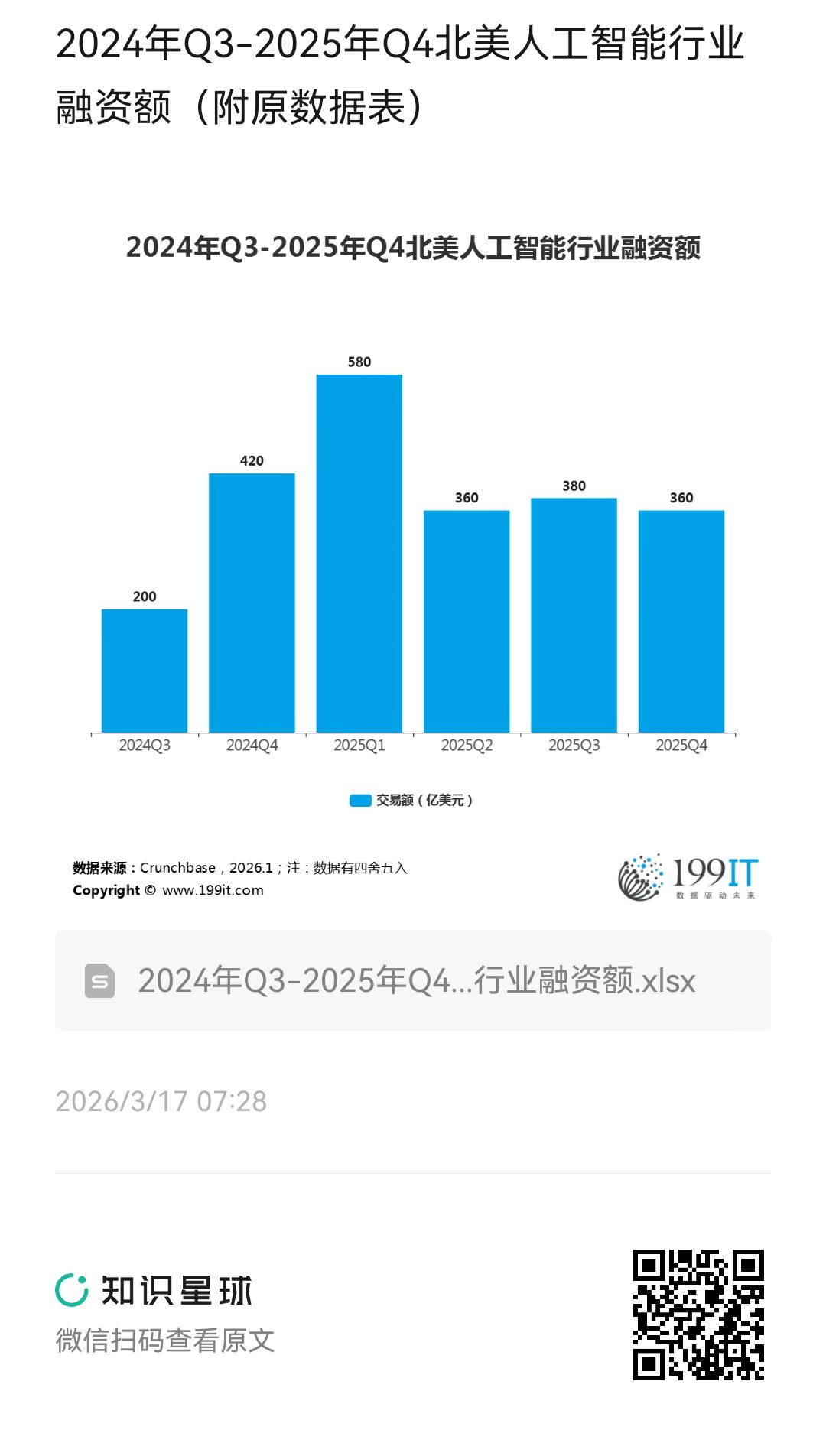2024年Q3-2025年Q4北美人工智能行业融资额(附原数据表) ​​​