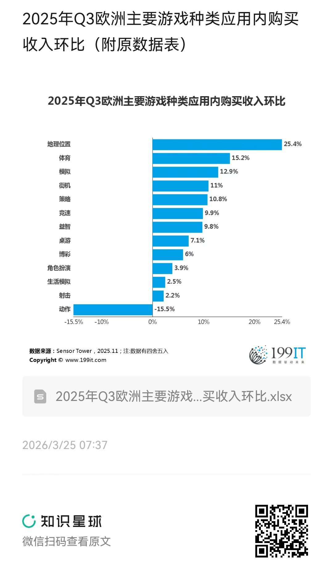 - 2025年Q3北美主要游戏种类应用内购买收入环比(附原数据表)