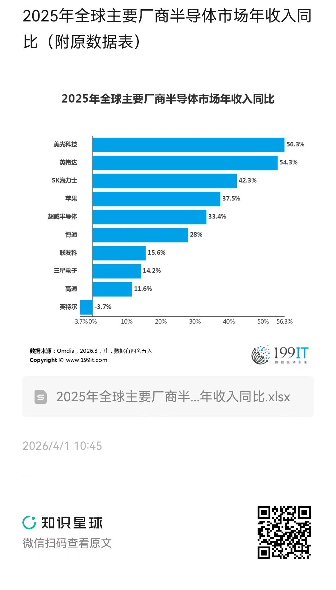 - 2025年全球主要厂商半导体市场年收入(附原数据表)