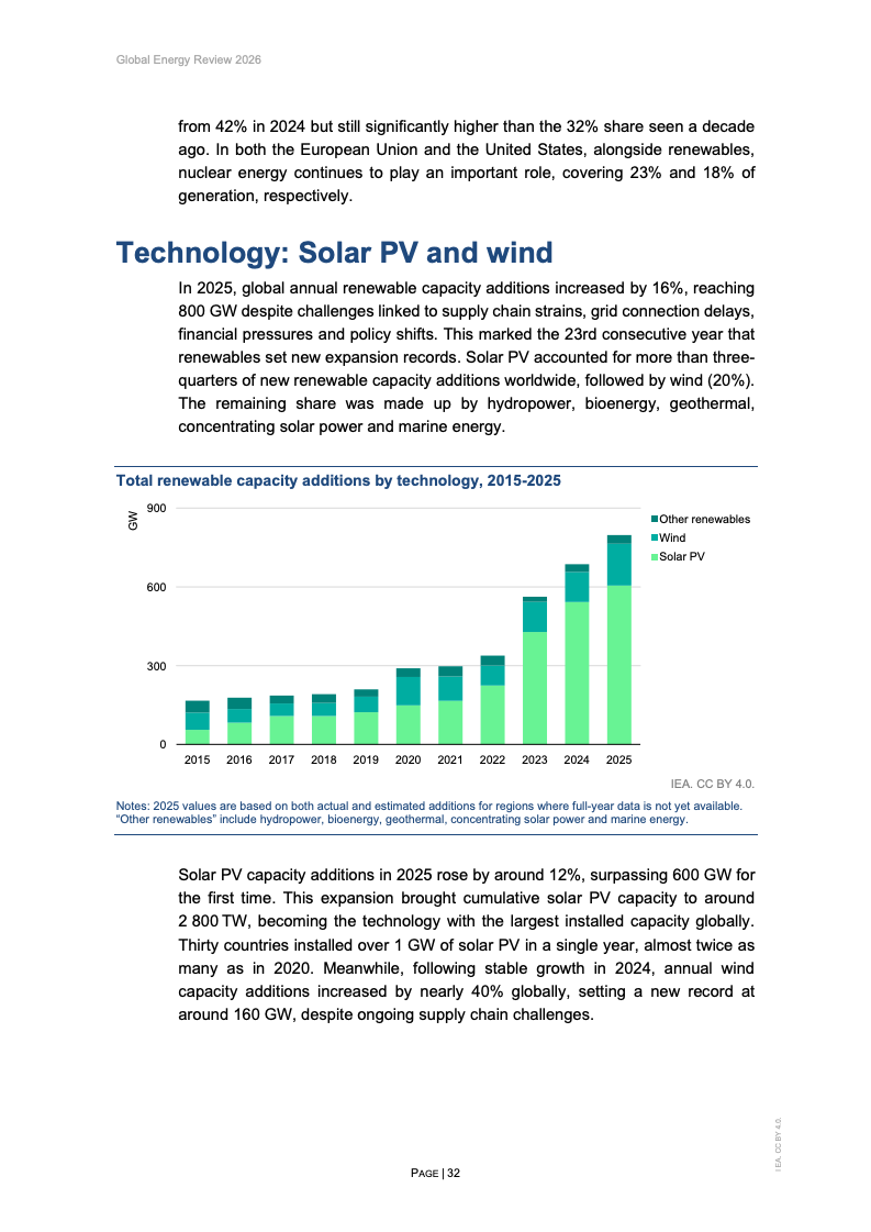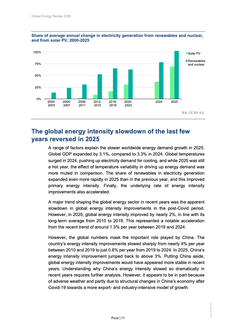 总体来看,全球能源体系正在经历从“增量扩张”向“结构重构”的深层转型,需求增长不再依赖能源消费规模扩张,而更多取决于效率提升与电力化进程;光伏、储能与电气化终端正在重塑能源供需逻辑,而化石能源虽仍占主导但边际影响持续下降,未来能源竞争的核心将转向技术效率、电力系统灵活性以及低碳转型路径的系统性能力,这一趋势将决定全球能源格局的长期演进方向。