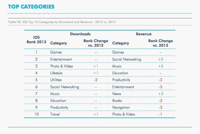 9、今年 iOS 的前十应用类别有不少变化,在下载量上,工具类跌出前三。而在 iOS 的应用收入上,社交类、音乐类应用变成了游戏以外最会赚钱的应用。