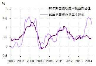 为了刻画这一点,在这种图中我还画上了用实体经济状况拟合出来的10年期国债收益率拟合值。