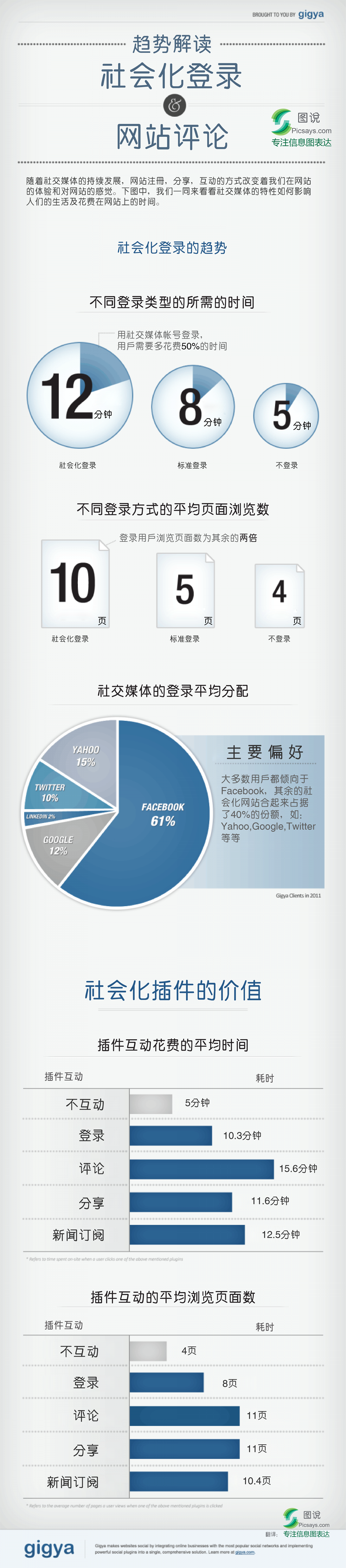 Gigya:社会化登录和网站评论趋势解读 随着社交媒体的持续发展,网站注册、分享、互动的方式改变着我们的网站体验和对网站的态度。这幅信息图可以看到社交媒体的特性如何影响人们的生活和花费在网站上的时间。 via:picsays 更多阅读:Gigya:下一代生物验证崛起 80%的消费者认为更安全Gigya:社交媒体登录状况及其对电子商务的影响(信息图)Gigya:一个互联网用户完整画像–信息图Janrain:Facebook与Google占社会化登录76%的份额janrain:社会化登录是用户的选择Janrain:2011年77%的美国网络消费者认为网站应该提供社会化登录服务Gigya:2017年消费者对隐私和安全态度报告Gigya: 2013年4-6月Google+好友分享率只有 2%Pew:3/4的网民希望能控制营销人员收集自己的信息Gigya:2015年Q1 Facebook社交网络登陆份额激增至63%eMarketer:用户“喜欢”使用Facebook账户登录其他网站消费者品牌报告:寻找真相中国人民银行:2019年第一季度城镇储户问卷调查报告asymco:互联网的未来力美科技:2013年移动端母婴消费者受众分析–信息图