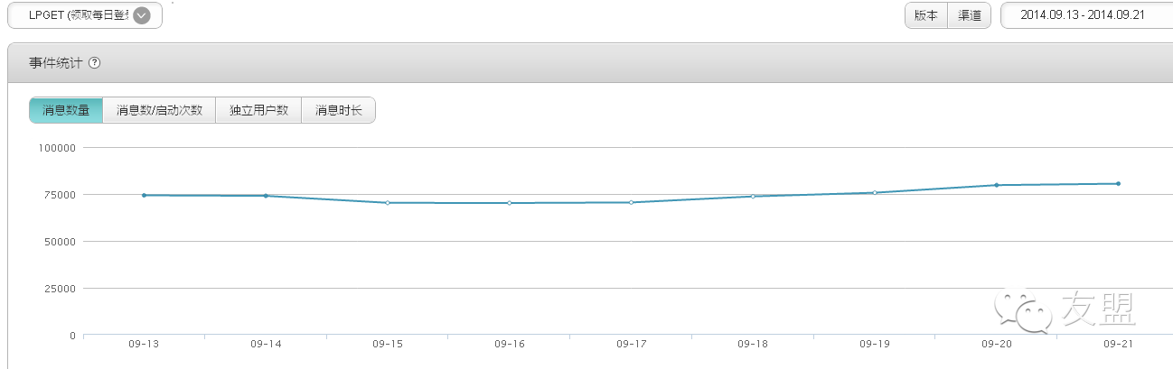 在策划运营活动、渠道推广之前,先了解日常数据的波动规律。运营团队每天关注新增用户和活跃用户的数据变化,并且进行周、月度对比。对游戏整体运营状况了解后,根据友盟平台提供的曲线趋势变化图配合商务部门制定渠道推广和游戏运营相关活动,从而提升和保持用户持续上线的黏性。