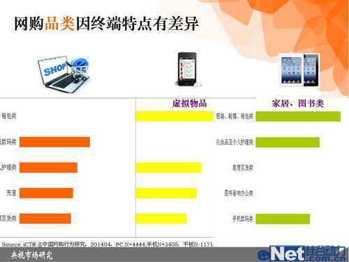 在人均访问的次数上我们也可以看到,综合门户因为大家更多是用来看新闻、咨询这样的一些目的。所以,月度人均访问的次数在36次,网络购物排在第三位24次,一个自然月度内,人均访问电商网站的次数达到24次,这个数字是很可观的,这是用户的黏性。用户其实做电子购物的时候,不仅仅局限在PC上,现在更多的用户会在不同屏幕上都可以进行这样的消费,而且有的时候是随时随地的消费。