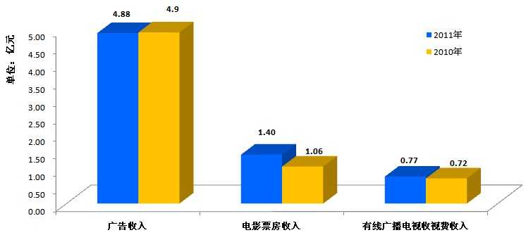 表1 2011年7月北京市广播影视创收收入情况