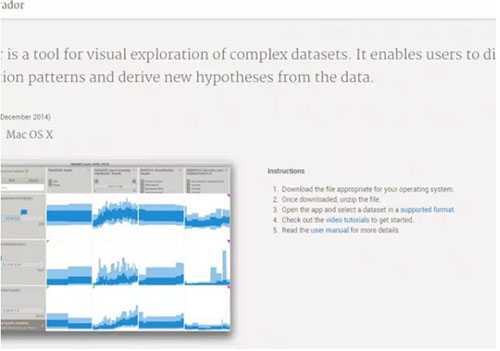 Mirador是一种提供大型数据库的可视化工具,通过可视化的基本结构,确定解释变量的群体。上手的最佳方式是阅读它的使用手册,并从网页下载的应用程序后,打开其中一个例子亲自操作。