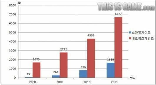 2011 年 Neowiz 与 Smile Gate 各有 50% 与 100% 的惊人的跃进式成长率,现在在中国享有最高人气的《穿越火线》可谓第一功臣,Smile Gate是《穿越火线 CF Onilne》的开发公司,而 Neowiz 负责流通。