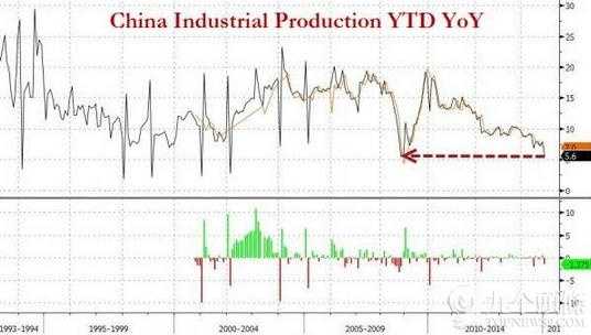 从国家统计局的数据来看,3月份,中国工业增加值同比上涨5.6%,不及预期增长7%,增速回落至2009年。