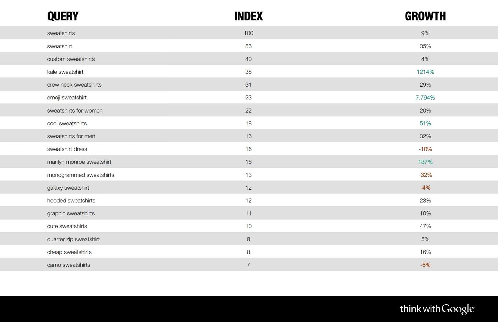 如果60亿次和潮流相关的谷歌搜索能够代表今年最新的流行趋势的话,你会发现,就连对瘦腿牛仔裤的关注可能都已经在减弱。