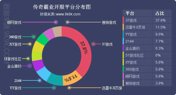 点评:《传奇霸业》本周开服趋势较上周变化不大,新增分布占比平台顺网游戏,本周开服占比暂为5.8%,其开服频率为3服/天。