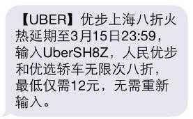 Uber会一直向用户发送推荐优惠促销邮件,通过优惠码、优惠序号作为利益点,以老用户不断吸引新客源,这是Uber长期坚持及推广策略之一。