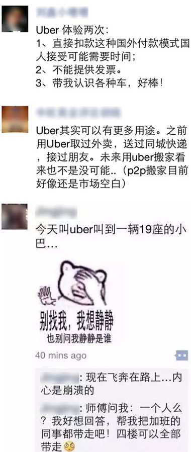 为了更加确切地了解Uber,笔者也经常在Uber乘车中和司机闲聊,问司机们为什么要做这件事情。回答大概有这几种:1)门槛很低,随时可以做或不做,比较自由;2)充分利用闲置的车,补贴油费。关于Uber和司机之间的各种结算和补贴政策,大家可以另外去了解。3)认识新的人或尝试新事物。比如一些司机告诉笔者,他们觉得挺新鲜,也希望扩大朋友圈;而一个司机告诉笔者他的老板做uber谈成了一笔生意、招到了一名员工。Uber在招募司机广告中的诉求点有:收获丰厚、工作自由、自己做自己的老板、为解决城市交通贡献一臂之力、加入全球共享潮流等。为什么司机愿意做?从笔者的了解来看,除了经济利益因素以外,做专车司机本身是否有趣、自由、体现个人价值主张等同样重要。另外再说说乘客的感受,为什么Uber能让用户产生热爱?作为乘客来说,干净整洁、环境舒适、方便快捷等高质量用户乘车体验至关重要,决定了顾客是否会长期光顾,笔者就听说,有些人因为习惯了专车的舒适而无法忍受坐出租车了。