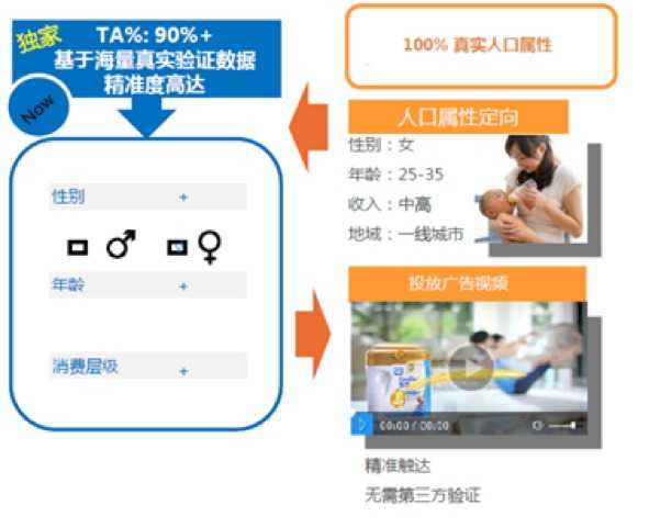 真实可靠的人口属性数据不能通过样本调研获取,只能依托实名的超级应用配合频率极高的行为数据对比分析挖掘才能获取。而阿里妈妈拥有阿里集团核心商业数据,包括真实的人口属性数据,再加上电商、甚至线上线下用户的访问、消费行为,获取人群的真实消费意向数据,真实的人口属性数据和真实消费意向数据的结合和交融,可以重新定义触达,这也是市场上唯一可信赖的“真人”大数据。