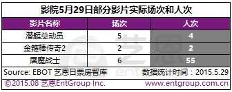 分析次日该影院的实际场次安排,表现不好的《屠魔战士》并没有减场,增加了低幼类动画片的场次,考虑到当天5月29日是周五并不是周末,在上一篇排片策略研究中也提到过该影院的低幼类动画片并卖座,增加的场次缺乏合理性。根据这三部影片的实际表现,可以看到这三部影片的产出并不理想,可以说是对有限场次资源的浪费,相反《哆啦A梦》并没有增加场次。
