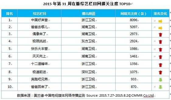 美兰德:2015年第31周电视节目网络传播指数 更多阅读:美兰德:2015年第32周电视节目网络传播指数美兰德:2015年第28周电视节目网络传播指数美兰德:2015年第35周电视节目网络传播指数美兰德:2016年第13周电视节目网络传播指数美兰德:2015年第51周电视节目网络传播指数美兰德:2015年第50周电视节目网络传播指数美兰德:2015年第29周电视节目网络传播指数美兰德:2015年第28周电视节目网络传播指数美兰德:2015年5月4-10日第19周电视节目网络传播指数美兰德:2016年第20周电视节目网络传播指数美兰德:2015年第49周电视节目网络传播指数美兰德:2015年第34周电视节目网络传播指数美兰德:2015年第33周电视节目网络传播指数美兰德:2016年第14周电视节目网络传播指数美兰德:2015年第37周电视节目网络传播指数