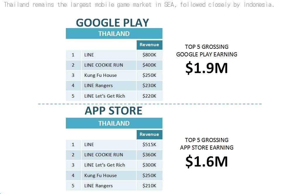 在东南亚,泰国仍然是最大的手机游戏市场,紧随其后的是印尼。
