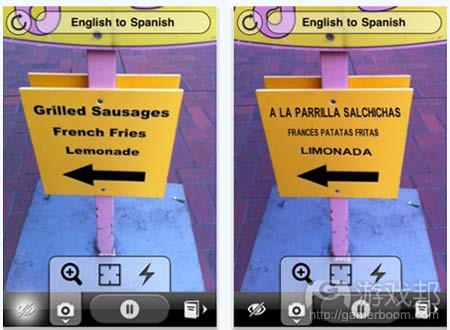 《Word Lens》这款iPhone应用让我颇为着迷。你拿出自己的iPhone,将其指向某个方向,摄像头便会自动捕捉文字内容,将其翻译后呈现在你面前。但是,应用并不是在底部显示翻译后的内容,而是直接将翻译过的文字覆盖在原文字之上。