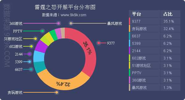 点评:《雷霆之怒》本周开服略有减少,较上周减少3.7%,其在贪玩游戏日均开服频率由原来的12服/天调整为10服/天是其减少的主要原因。新增分布占比平台360游戏、暴风游戏。