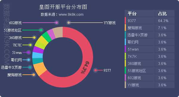 点评:《皇图》本周开服情况较上周基本未发生变化,新增分布占比平台哥们网、YY游戏开服频率均为1服/天。
