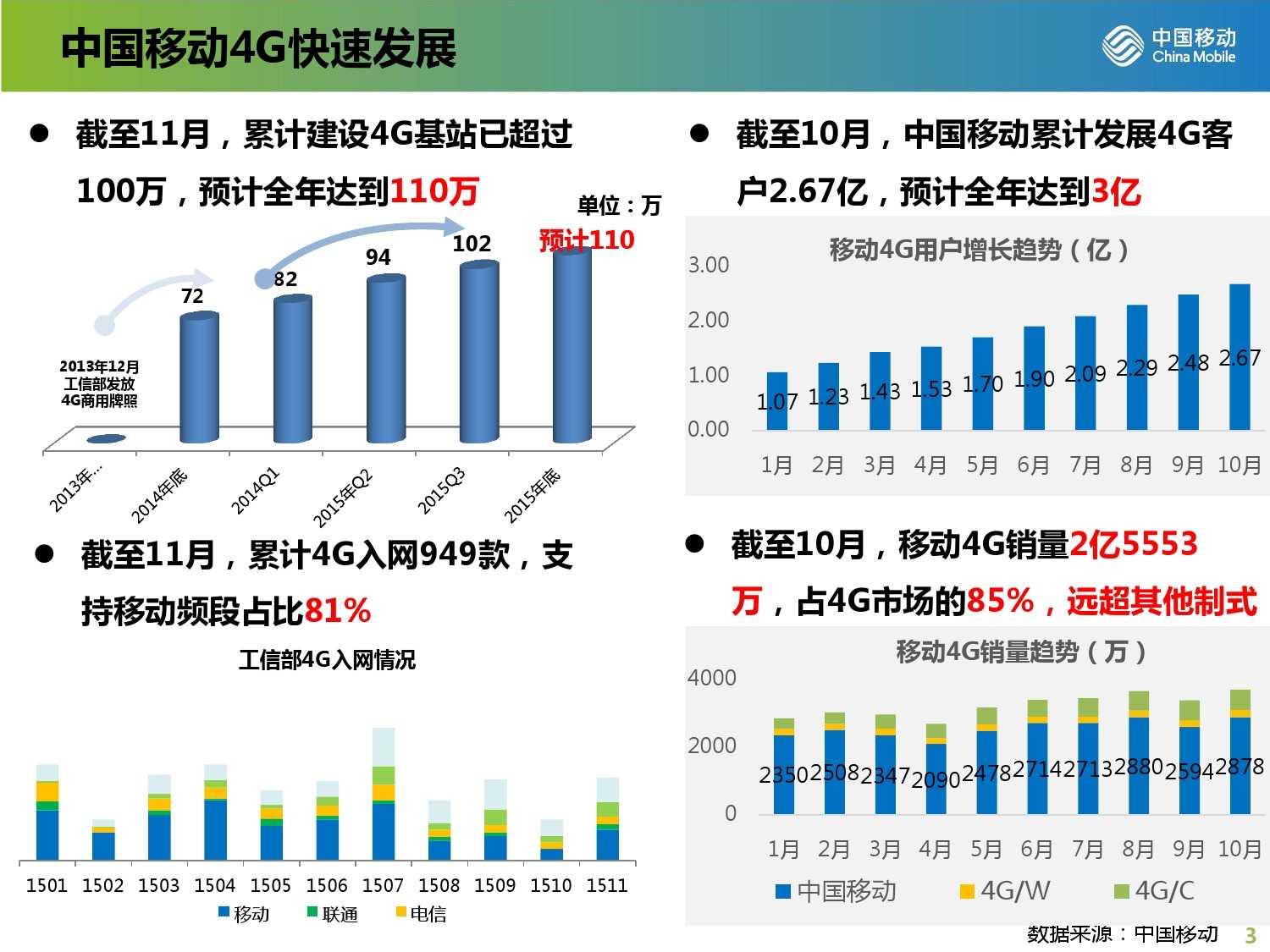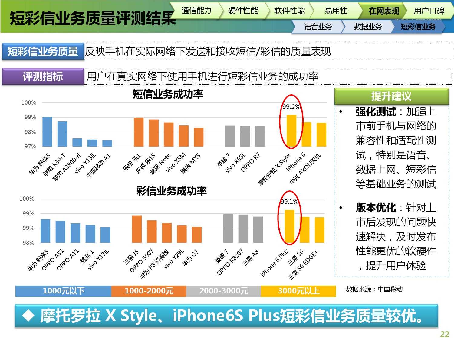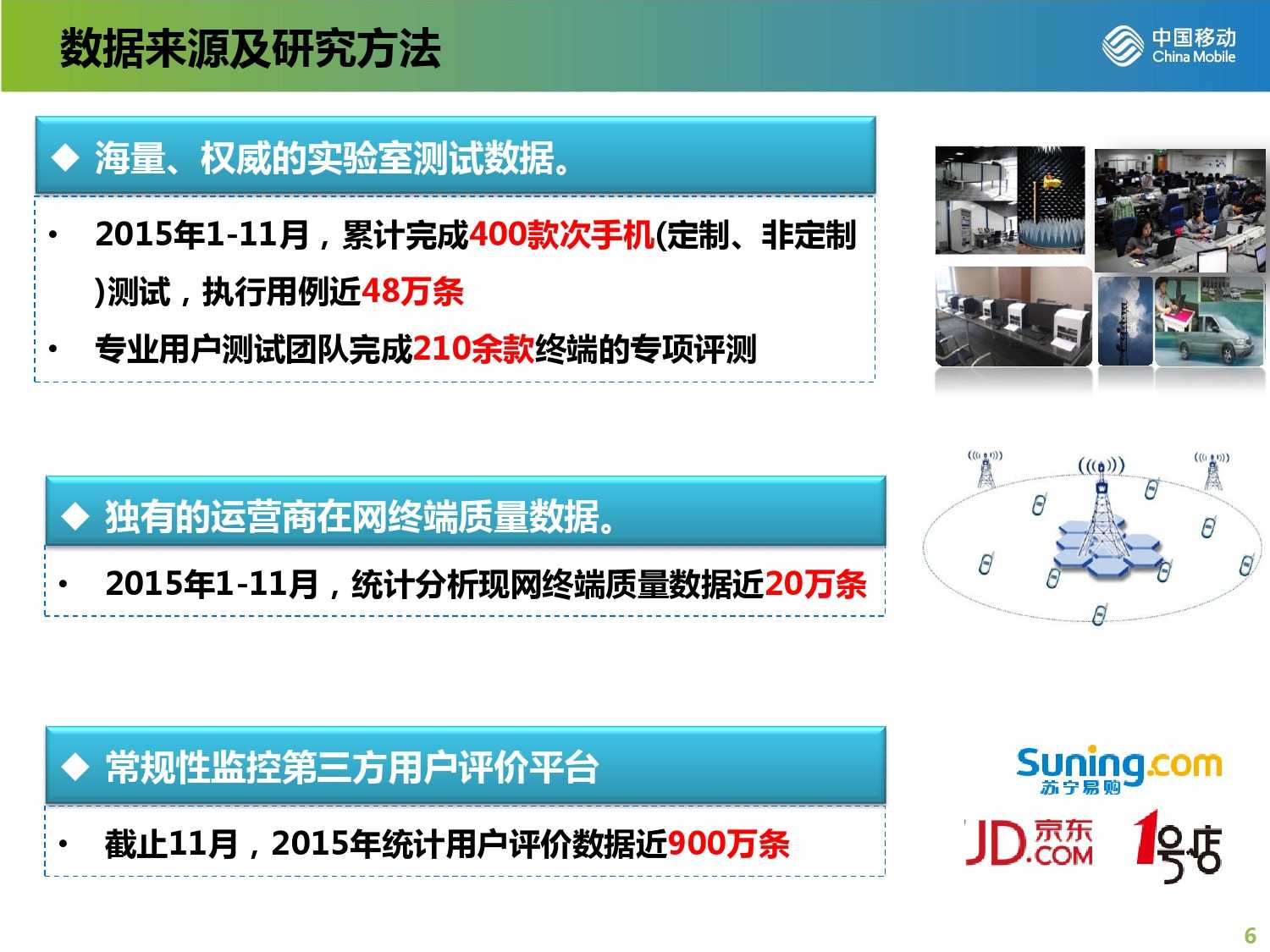 2015年中国移动终端质量报告 更多阅读:2017年中国移动终端质量报告中国移动:2011年4月中国移动数据业务运营数据中国移动:2012年6月中国移动用户总数超过6.83亿户中国移动:2012年1月移动网上营业厅综合浏览量达16.29亿次2016年中国移动终端产品规划中国信通院:“来电免打扰”服务全国注册用户数已突破6亿三大运营商:全网5G套餐用户已超13.22亿 用户渗透率已达76.5%Ookla:2023年Q3中国广电5G中位数下载速度达167.98Mbps 在测试中拔得头筹Ookla:2023年Q3中国移动以179.81Mbps的中位数下载速度位列中国市场移动网络第一12321受理中心:2023年Q2垃圾短信投诉中国移动占67.6%工信部:5G商用五年间接带动总产出约14万亿元中国移动:2023年1月中国移动业务净增50.3万户 5G套餐达6.2247亿户2022年11月三大运营商数据盘点 中国移动单月净增两千万以上用户天翼物联:中国电信物联网用户超4亿 超过移动电话用户数工信微报:2022年8月1000Mbps及以上接入速率的固网宽带接入用户达7055万户