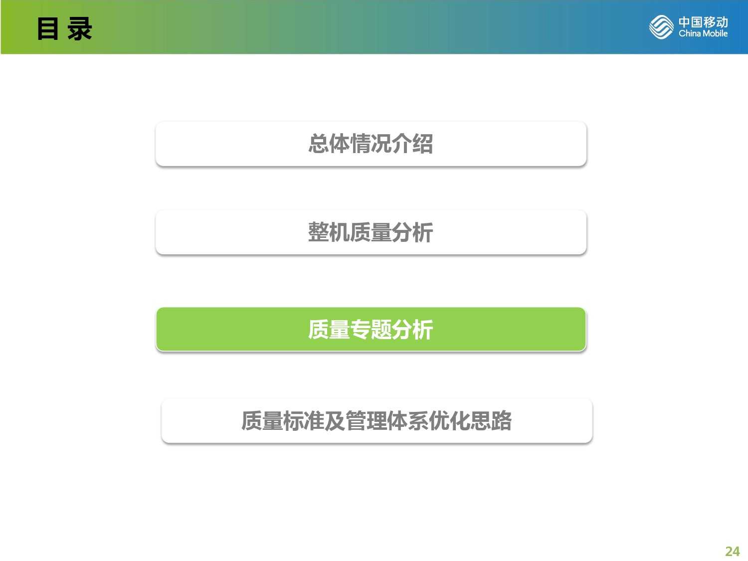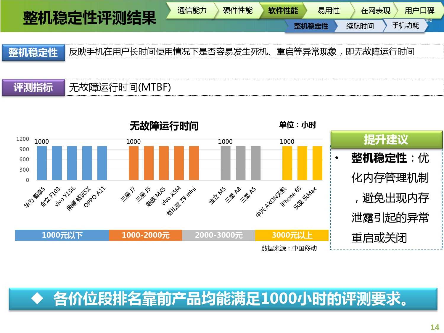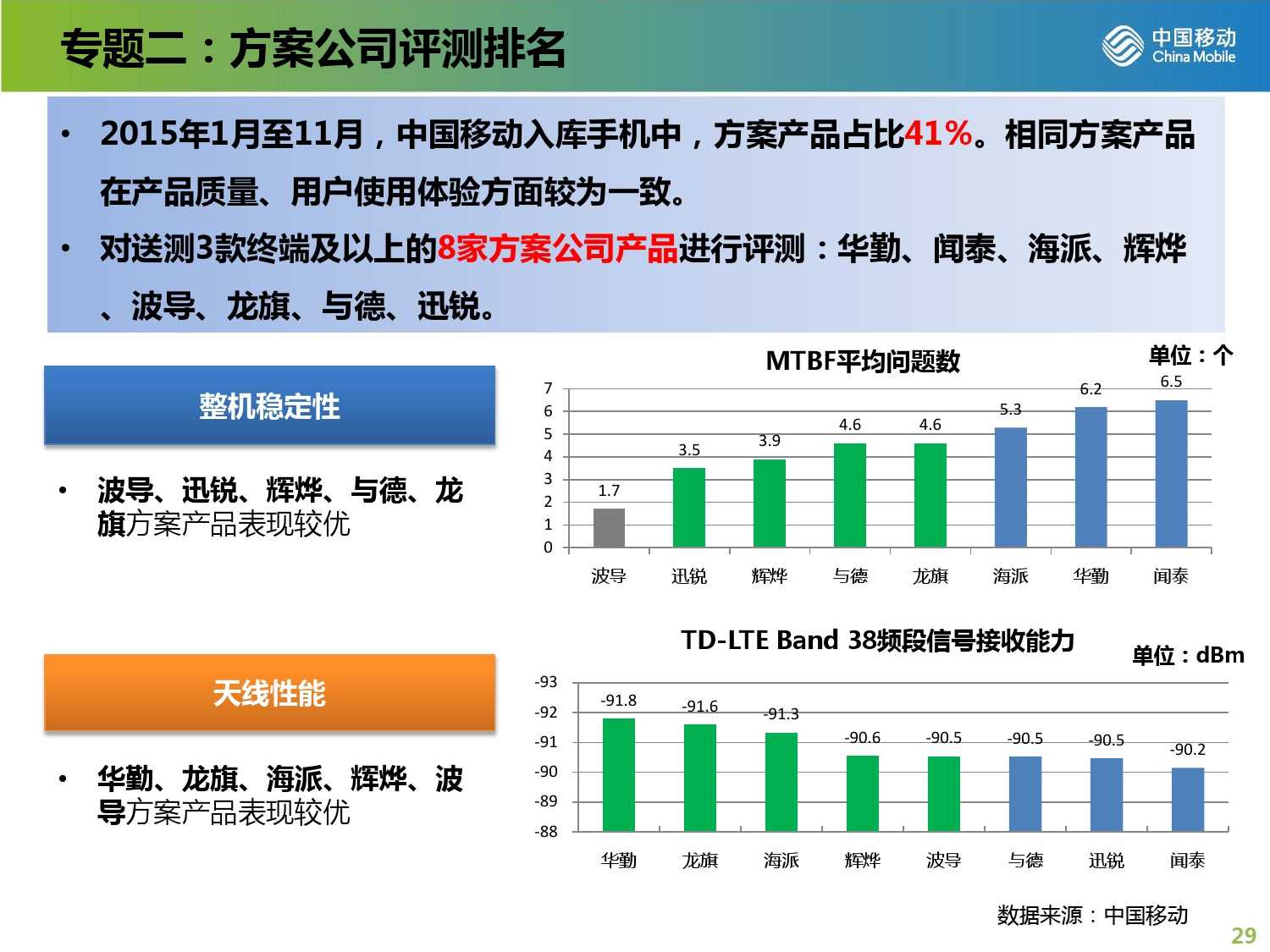 2015年中国移动终端质量报告 更多阅读:2017年中国移动终端质量报告中国移动:2011年4月中国移动数据业务运营数据中国移动:2012年6月中国移动用户总数超过6.83亿户中国移动:2012年1月移动网上营业厅综合浏览量达16.29亿次2016年中国移动终端产品规划中国信通院:“来电免打扰”服务全国注册用户数已突破6亿三大运营商:全网5G套餐用户已超13.22亿 用户渗透率已达76.5%Ookla:2023年Q3中国广电5G中位数下载速度达167.98Mbps 在测试中拔得头筹Ookla:2023年Q3中国移动以179.81Mbps的中位数下载速度位列中国市场移动网络第一12321受理中心:2023年Q2垃圾短信投诉中国移动占67.6%工信部:5G商用五年间接带动总产出约14万亿元中国移动:2023年1月中国移动业务净增50.3万户 5G套餐达6.2247亿户2022年11月三大运营商数据盘点 中国移动单月净增两千万以上用户天翼物联:中国电信物联网用户超4亿 超过移动电话用户数工信微报:2022年8月1000Mbps及以上接入速率的固网宽带接入用户达7055万户