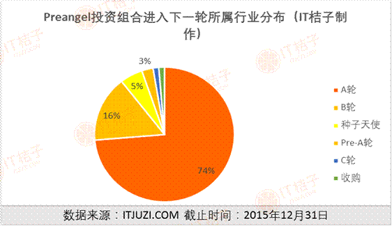 PreAngel所投资项目在进入下一轮的轮次分布上,主要集中在了早期和成长期,在A轮和B轮的投资占到了90%,极个别案子进入到后期。如C轮的明星衣橱,还有就是主打海外留学服务的时差网是被新东方收购。