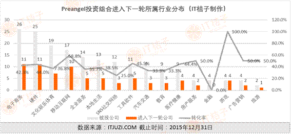 2、所投公司进入下一轮的领域分布上,电商、企业服务和文娱排位前三