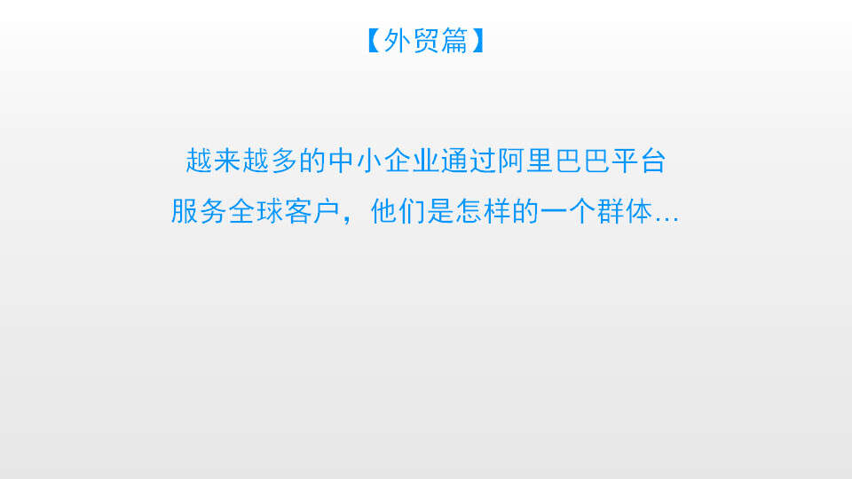 2016中国B2B新趋势与新探索 中国出口趋缓,问题是需求趋缓,还是供应链待改善?40张PPT告诉你,阿里巴巴大阵仗组织B2B峰会不是没有理由,商机还有很多,只待贸易链条重整、增进效率。 以下是阿里巴巴全球B2B生态峰会上的40张关键报告,《2016中国B2B新趋势与新探索》。 更多阅读:农业B2B电商发展现状eMarketer:B2B流行通过平板进行销售展示CMI:企业B2B内容营销现状和趋势Pipeline360:2024下半年B2B渠道增长报告NetLine:2024年B2B内容使用和需求报告B2B电子商务采用指南:如何留住客户B2B电子商务指南:传统已去,数字化已来Elastic Path:解决B2B电子商务难题B2BecNews:2019年美国B2B电子商务报告Aberdeen报告:53%的B2B买家推迟了一半购买决定ValueSelling Associates:2018年B2B营销挑战调查报告未来就是现在:科技塑造电子商务eMarketer:2017年美国B2B网络广告支出40.7亿美元SnapApp:千禧一代B2B买家报告Recurly:2/3的B2B免费试用会发生转化