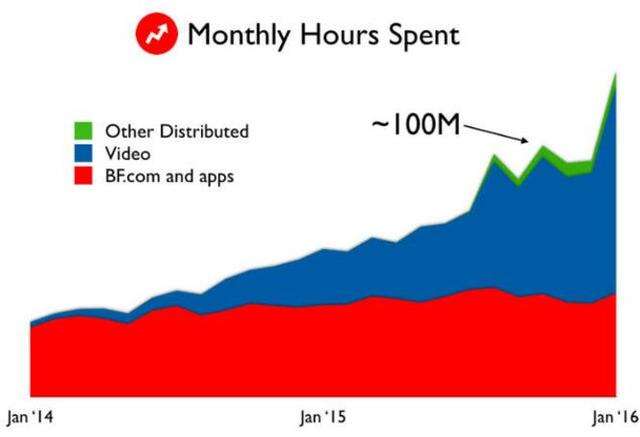2016年2月20日去年10月,BuzzFeed报告称,月内容观看量已突破50亿次。这既包括来自网站和应用的数据,也覆盖了发布至Snapchat和Facebook等社交平台的内容。