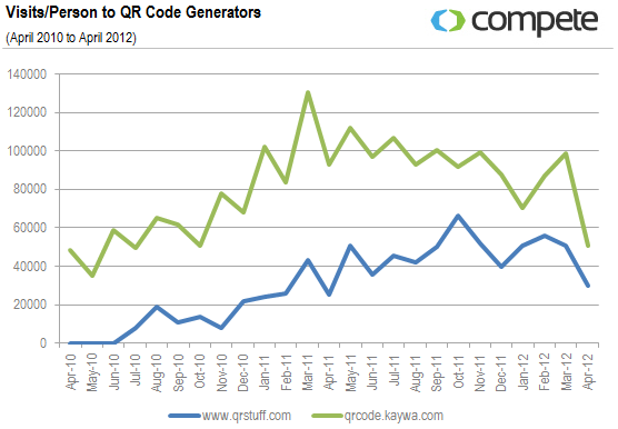 为了更好的评估QR码营销现状,我检查了两大领先的QR码生成网站过去几年间的流量,发现这些网站的流量有高峰也有低谷,但值得关注的是在过去的几个月间,这些网站的流量一直在走低。